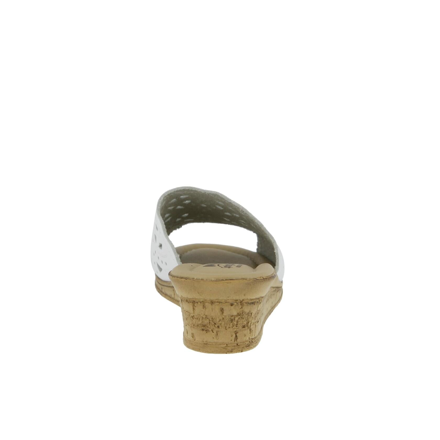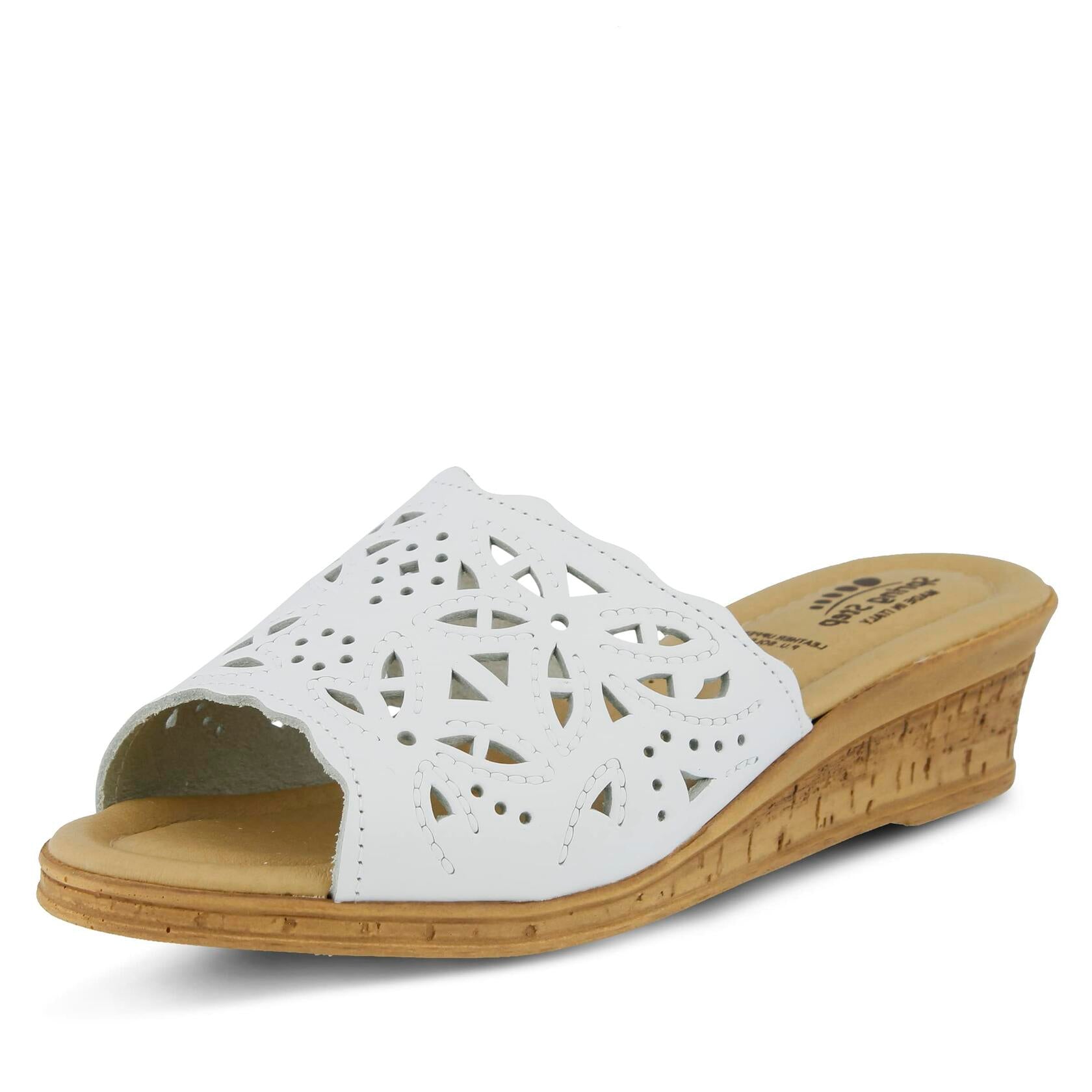 Step into effortless elegance with the Spring Step Estella wedge slide sandals. Designed in Italy with attention to detail and quality craftsmanship, these sandals feature a striking geometric laser-cut upper made from luxurious Italian nubuck leather. The breathable, open design paired with a soft padded insole ensures all-day comfort, while the cork-inspired textured wedge adds just the right touch of natural charm and lift. Whether the user is headed to brunch, strolling through a weekend market, or enjoying an evening out, the Estella sandals effortlessly elevate any outfit. Slip them on with wide-leg jeans and a breezy blouse for an easy-going, stylish look. Features: Soft, supple, and stylish with intricate geometric laser-cut designs. A chic wedge heel (1 ") with a " platform for the perfect blend of style. Synthetic leather padded insole provides cushioned support with every step. Durable, flexible, and perfect polyurethane outsole for everyday wear. Crafted with care, these slides bring a touch of continental charm.