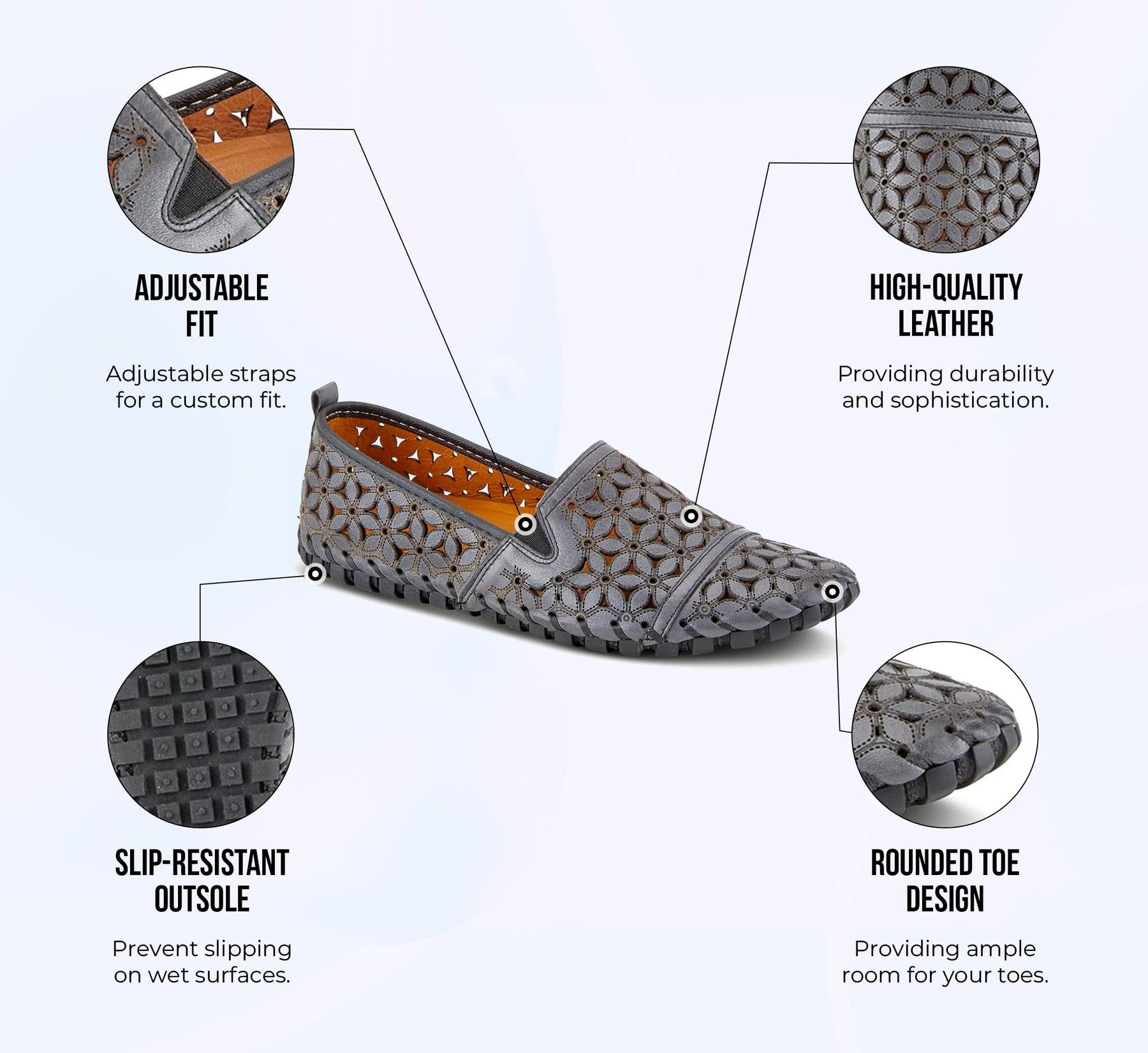 Spring Step Style: FLOWERFLOW A new upper based off our #1 selling style FUSARO. All the same qualities with a NEW beautiful floral laser cutout. A timeless classic loafer with stretch goring on both sides and a design to satisfy the demands of every lifestyle. Upper: Leather Lining: Leather Insole: Leather Outsole: Rubber Closure: Slip-on Heel Height: 1/2" Platform Height: 1/4" Features: - Elastic, Flexible Sole, Padded Insole Made in Turkey