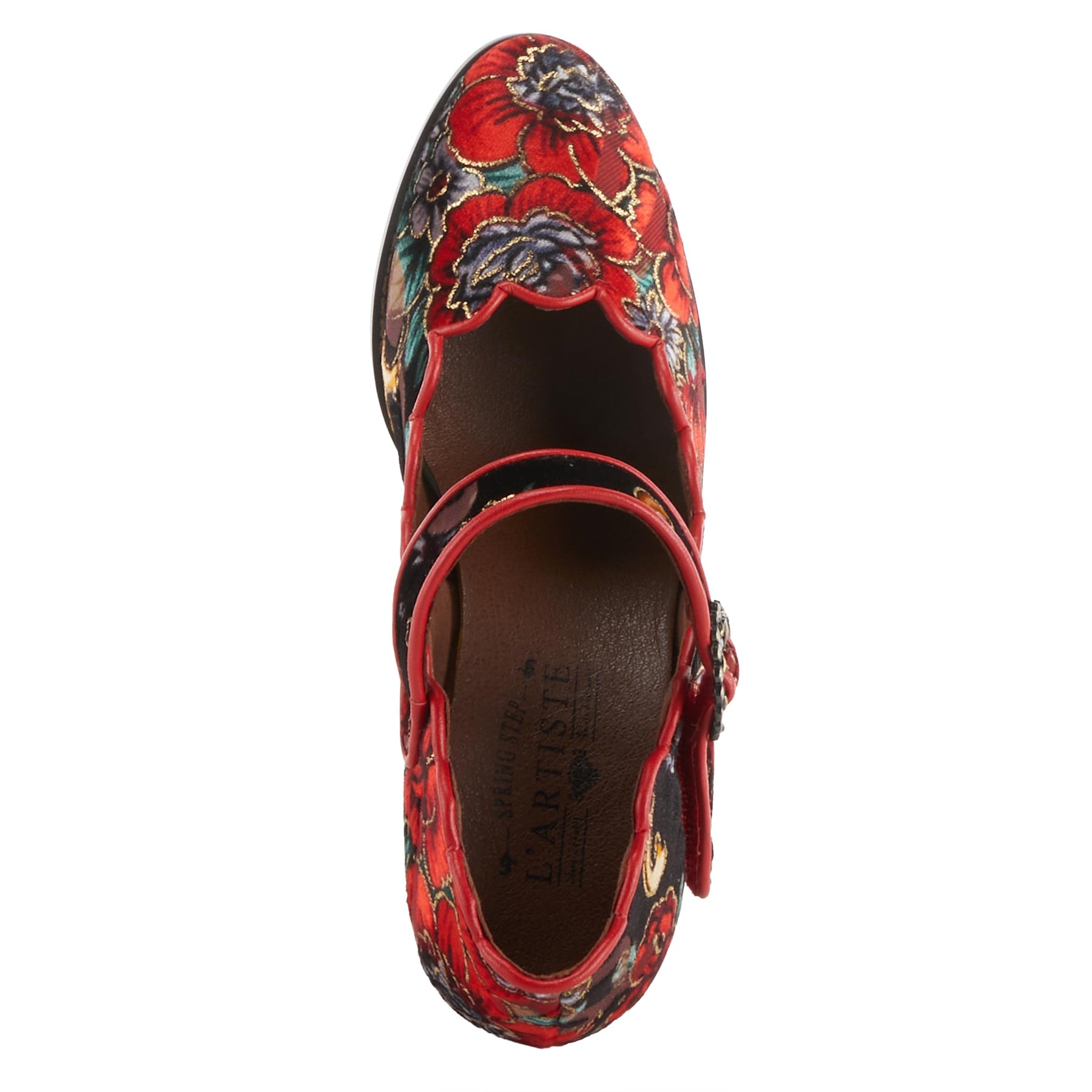 L'ARTISTE Style: ADODORA These heeled Mary Janes are the epitome of elegance and sophistication with their stunning tapestry floral pattern. The hook and loop closure, along with the decorative buckle, adds a touch of charm and practicality to these beautiful shoes. With their low heel and scalloped edges, they are the perfect choice for any occasion where style and comfort are a must. Upper: Synthetic, Textile Lining: Synthetic, Textile, Velvet Insole: Synthetic, Textile Outsole: Rubber Closure: Hook&Loop Heel Height: 2 1/2" Features: - Comfort, Flexible Sole - Padded Insole, Premium Fit Recommendation: True to Size Disclaimer: LArtiste products are made with natural tanned leather using traditional hand painting techniques. This unique finishing process is used to create a natural effect with color variations to deliver authentic look and beauty.