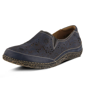 The L'Artiste by Spring Step Libora Slip-On is a French-inspired, hand-painted leather loafer featuring flower perforated design and covered elastic goring. Round toe, hand-painted leather, and