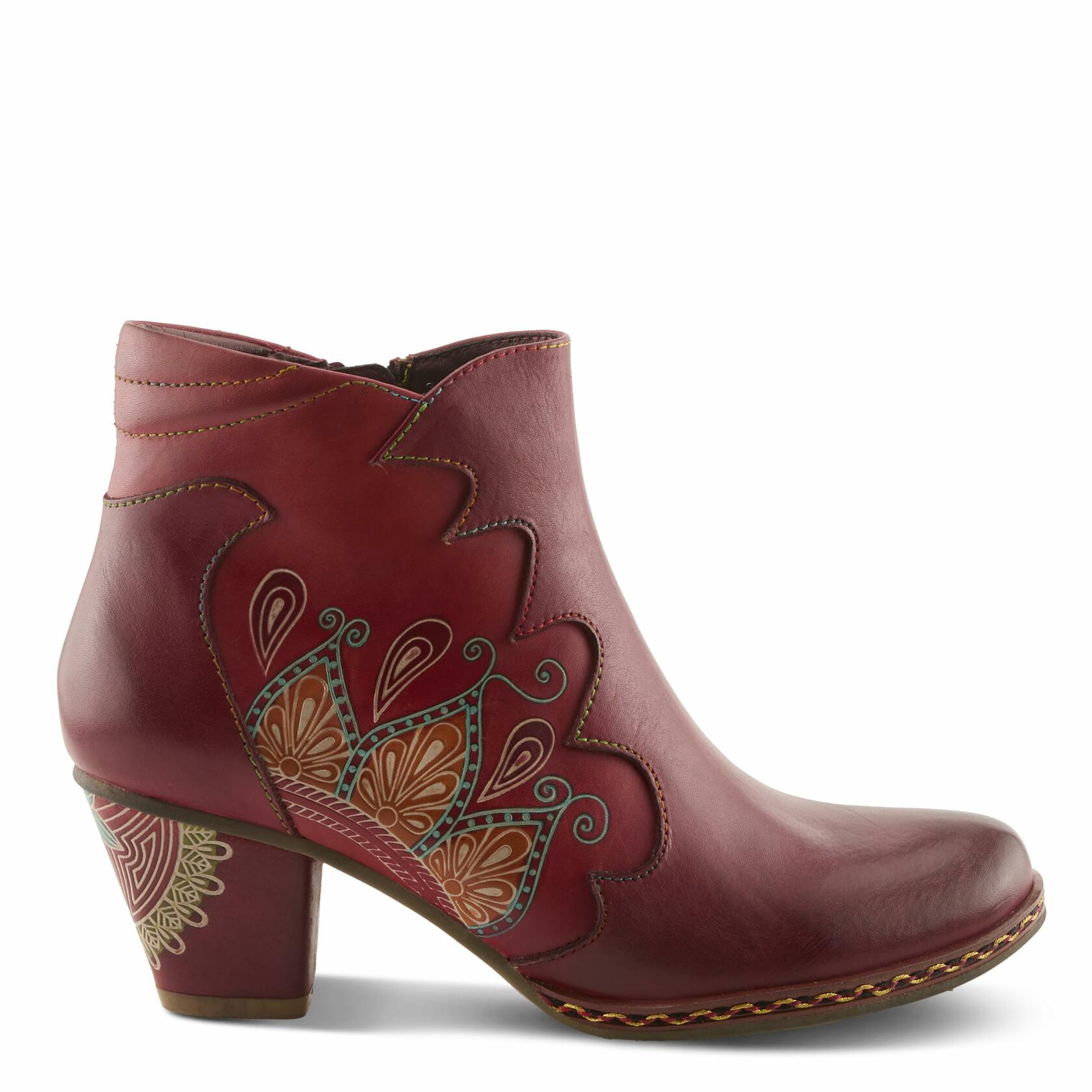 L'ARTISTE Style: ZAMIHI Elevate your shoe game with these beautiful hand-painted leather booties featuring an embossed, burnished, and polished design. With an inside full-length zip and brushed metal pull tab, putting on and taking off these booties is a breeze. The padded topline adds an extra layer of comfort, while the hand-painted leather covered heel gives these booties a unique and elegant touch. Upper: Leather, Synthetic Lining: Synthetic, Textile Insole: Synthetic, Textile Outsole: Rubber Closure: Zipper Heel Height: 2 1/4" Shaft Height: 5 1/2" Circumference: 9 1/4" Features: - Comfort, Flexible Sole - Hand-painted, Padded Insole, Premium, Textured Fit Recommendation: True to Size Disclaimer: LArtiste products are made with natural tanned leather using traditional hand painting techniques. This unique finishing process is used to create a natural effect with color variations to deliver authentic look and beauty.