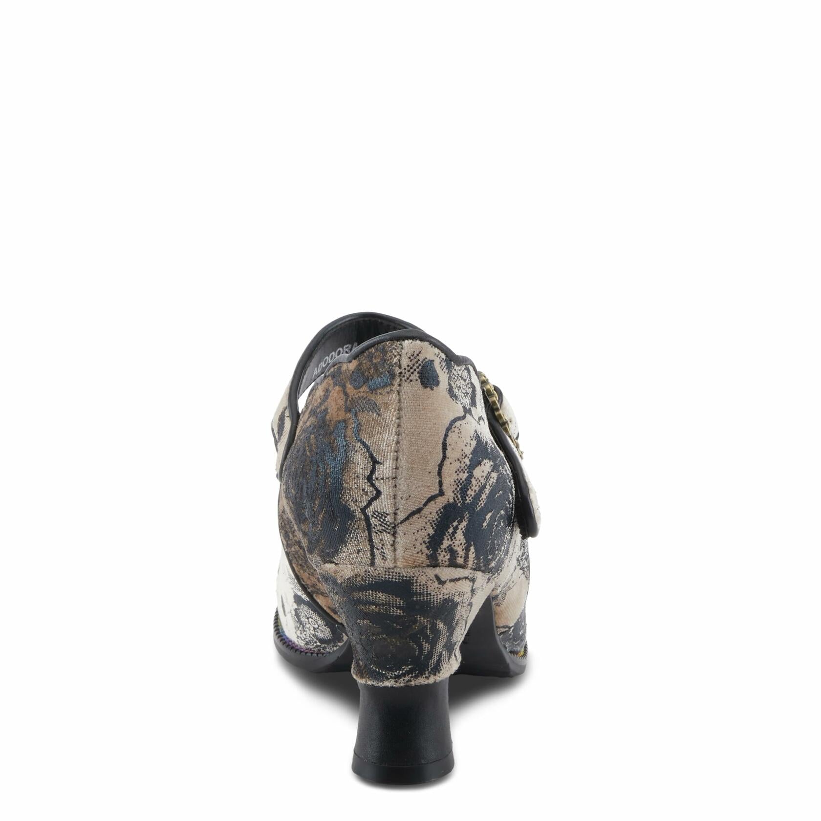 Indulge in vintage-inspired elegance with the L'Artiste Adodora-Prit Mary Jane Pumps, a stunning baroque-style design that blends whimsy with sophistication. Crafted with a luxurious velvet and leather combo upper, these heels feature an artistic mix of colors, textures, and scalloped edges for a truly one-of-a-kind look. The ornate antique-style buckle complements the adjustable hook-and-loop closure, ensuring both style and convenience. A modest, sculpted heel provides a graceful lift while ensuring all-day comfort. Whether youre dressing up for a special occasion or adding a bold, artistic touch to everyday wear, these heels are a wearable masterpiece for the modern trendsetter.