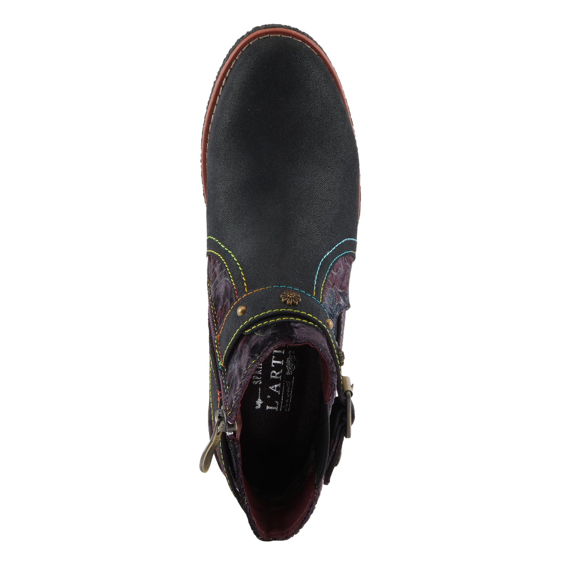 Glamorous Chelsea Booties - Make a dramatic entrance with L'Artiste Airies chelsea booties. These stylish booties blend edgy studs and ornate embellishments for show-stopping style. The plush suede and velvet upper with hints of glitter emanate luxury, while the metallic animal print stretch gore delivers striking flair. Slip these on to infuse any outfit with glamour and confidence. Key Features: Edgy studs, ornate embellishments, plush suede and velvet, glitter accents, metallic animal print stretch gore, glamorous and stylish, perfect for making a statement.