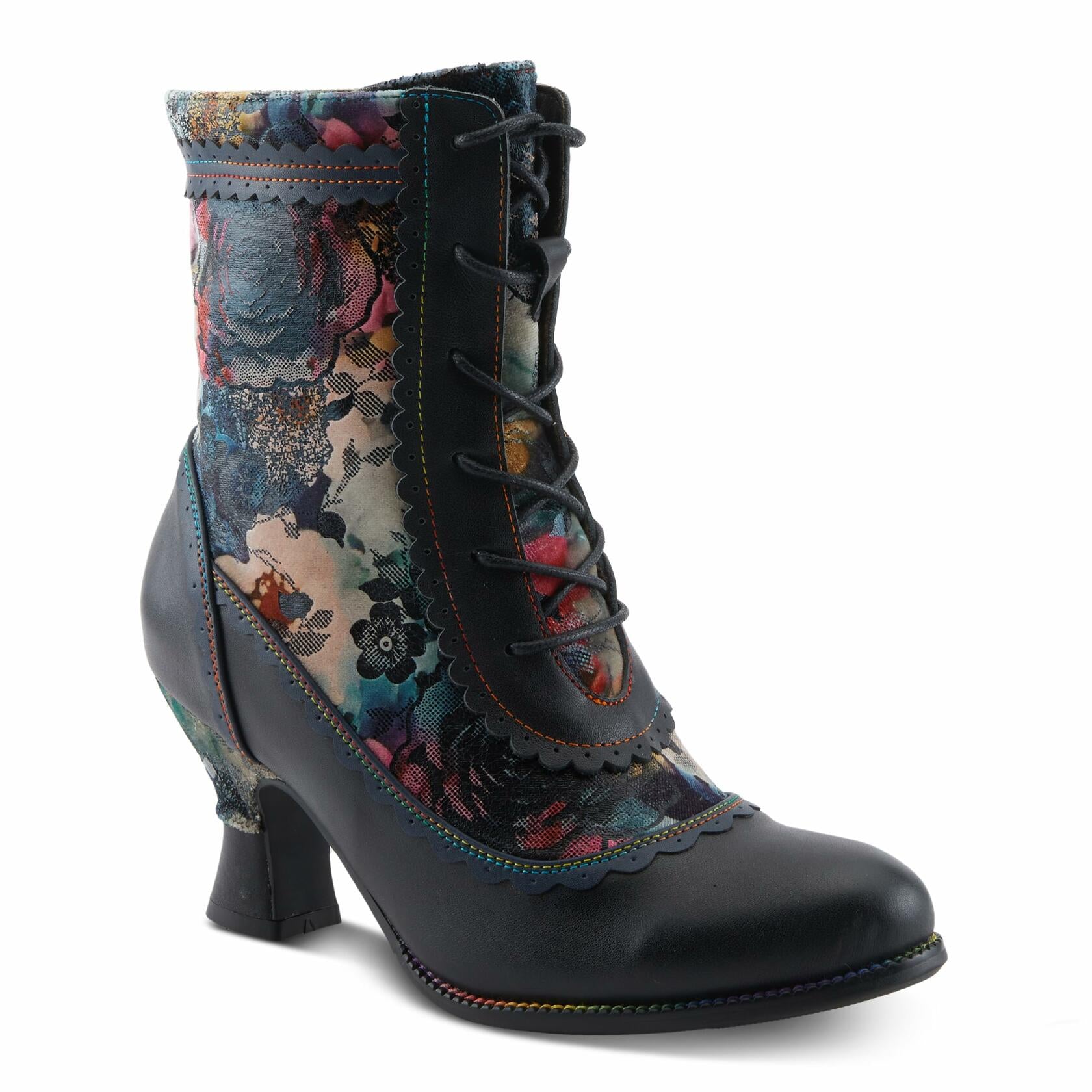 Description Unleash your bold, artistic spirit with the L'ARTISTE BEWITCH-PRIT Boots—a stunning combination of vintage elegance and modern comfort. These eye-catching ankle boots are handcrafted with premium full-grain leather, adorned with intricate detailing and subtle floral embossing for a unique finish. A stacked block heel adds just the right amount of height, while the soft padded insole ensures all-day comfort. Perfect for fashion-forward women who love to make a statement with their footwear.