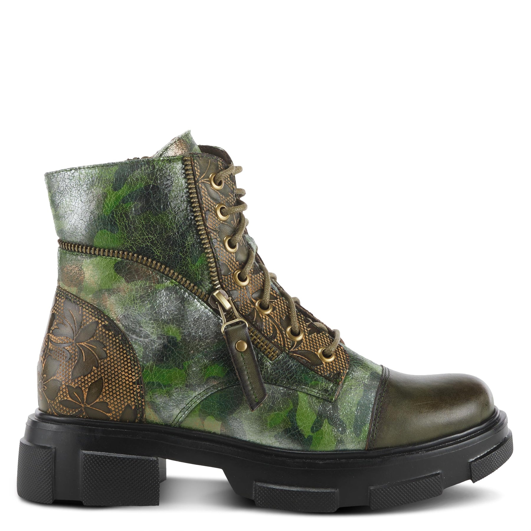 Spring Step L'Artiste Carnelian Booties for Women - Leather Ankle Boots with Lace-up and Zipper - Hand-Painted Womens Boots for Outdoor - Olive Multi EU 36 / US 5.5-6