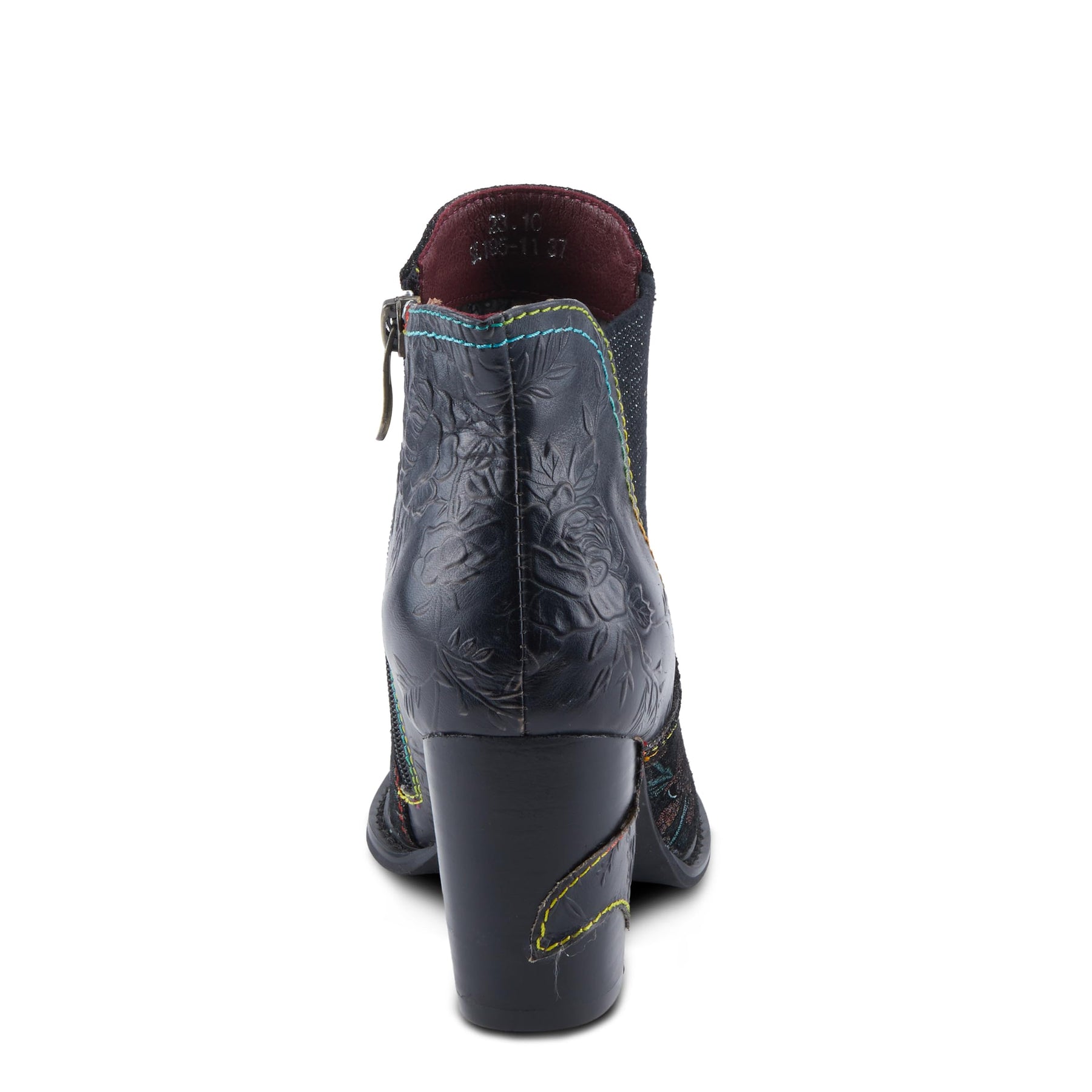 Embossed Floral Booties - Elevate your look with L'Artiste Ceja booties. These booties feature unique embossed floral details on the cap toe and back panel, creating an eye-catching pattern that seamlessly transitions into the heel patch. The intricate embossed accents make these booties a standout statement piece, perfect for adding a touch of elegance to any outfit. Whether you're dressing up for a special occasion or adding flair to your everyday look, L'Artiste Ceja booties offer a perfect blend of style and comfort. Key Features: Embossed floral details, unique design, standout statement piece, elegant and stylish, perfect for any occasion.