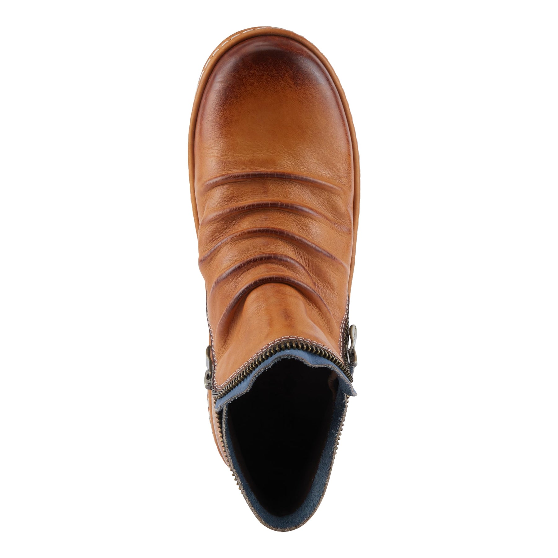 Feminine Flair Meets Comfort in CHESAPEAKE Booties - Step into the delicate painted flowers and burnished leather of CHESAPEAKE booties. The ruched front adds a bohemian touch, perfect for casual outfits. With a flexible sole and easy-access zipper, these booties are designed for all-day wear. Pair them with jeans, leggings, or a dress for effortless style and comfort. Add CHESAPEAKE to your wardrobe for a touch of artful sophistication.