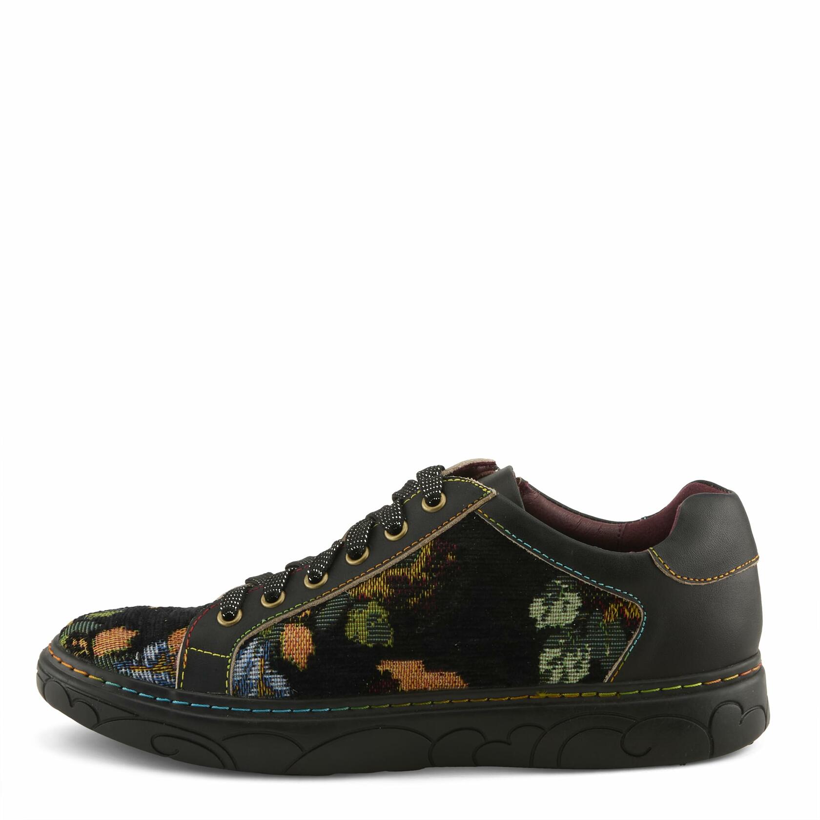 The Spring Step L'Artiste Danli-Fab Fashion Sneakers artfully combine premium hand-painted leather and vibrant tapestry print to create a uniquely stylish and boho-chic footwear option. The upper showcases a blend of soft leather and dynamic textile adorned with a brushed, embossed, and hand-painted finish that delivers both texture and visual interest. Signature rainbow stitching borders the sculpted platform sole, adding a playful artistic flair that highlights artisanal craftsmanship. Designed for easy wear, the sneaker features an adjustable lace-up closure with metal eyelets and a convenient side zipper for quick on-and-off access. The super-padded collar and removable cushioned insole provide exceptional comfort and support, making these sneakers ideal for all-day wear, whether out for a casual stroll, travel, or making a style statement. The flat, bear-embossed outsole offers reliable traction and durability on varied surfaces. With a round toe, mid-height platform heel measuring 1 inches, and true-to-size fit, these sneakers blend modern trends with vintage-inspired design for versatile, comfortable wear that complements any wardrobe. FEATURES: Premium hand-painted leather upper design Unique tapestry print for stylish texture Colorful signature rainbow stitching accent Convenient side zipper for easy wear Adjustable lace-up closure with metal eyelets Cushioned padded collar for ankle support Removable cushioned insole for comfort Flat platform sole with bear embossing Excellent all-day grip and durability True-to-size fit for versatile wear