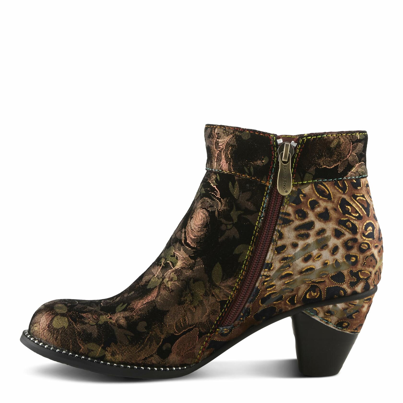 Our L'Artiste Dessalynn heeled ankle booties combine artistic detail and unmatched comfort, perfect for elevating any wardrobe. The stylish boot features a captivating blend of floral-printed suede and animal-printed velvet, creating a rich texture and striking visual effect. This boot's decorative button adds vintage character and sophistication while celebrating timeless design. The boots' height offers elevation without compromising stability, making them suitable for any occasion, from workdays to weekend socials. The vintage ankle boots' side zipper ensures effortless slip-on and off, keeping the silhouette sleek and convenient. Our fashion boots' premium materials extend into the fabric lining and cushioned faux leather insole, delivering soft, breathable support and comfort for prolonged wear. This boot's durable rubber outsole is designed for traction and resilience, keeping you steady across surfaces. Our luxury ankle boots height of six inches high with a ten-inch circumference, fit true to size, providing a flattering and comfortable fit. This long-lasting boot requires gentle cleaning with suede care products and storage away from direct light to maintain the boots' texture and color vibrancy. This boot is a beautiful fusion of vintage charm and contemporary artistry, perfect for those who value style and function without compromise. Features: Luxurious suede and velvet combo upper Floral and animal print design Decorative vintage button accent Easy side zipper closure Sculpted stacked mid-heel 2 1/4" Durable rubber outsole with traction Soft fabric lining for comfort Cushioned faux leather insole Versatile casual and dressy style Elegant ankle boot silhouette