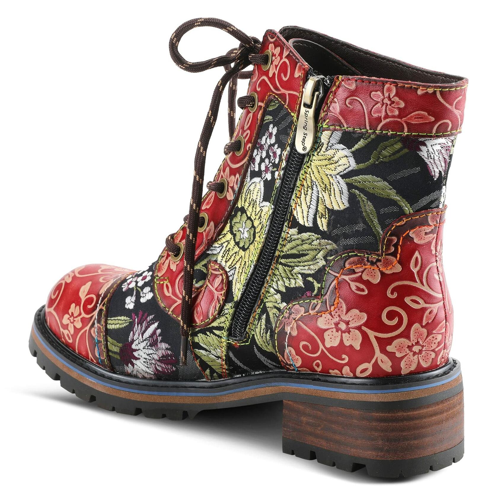 Spring Step L'Artiste Fantastic Booties for Women - Floral Hand Painted Womens Ankle Boots Low Heel - Everyday Wear Leather and Textile Western Booties Red Multi EU 36 / US 5.5-6