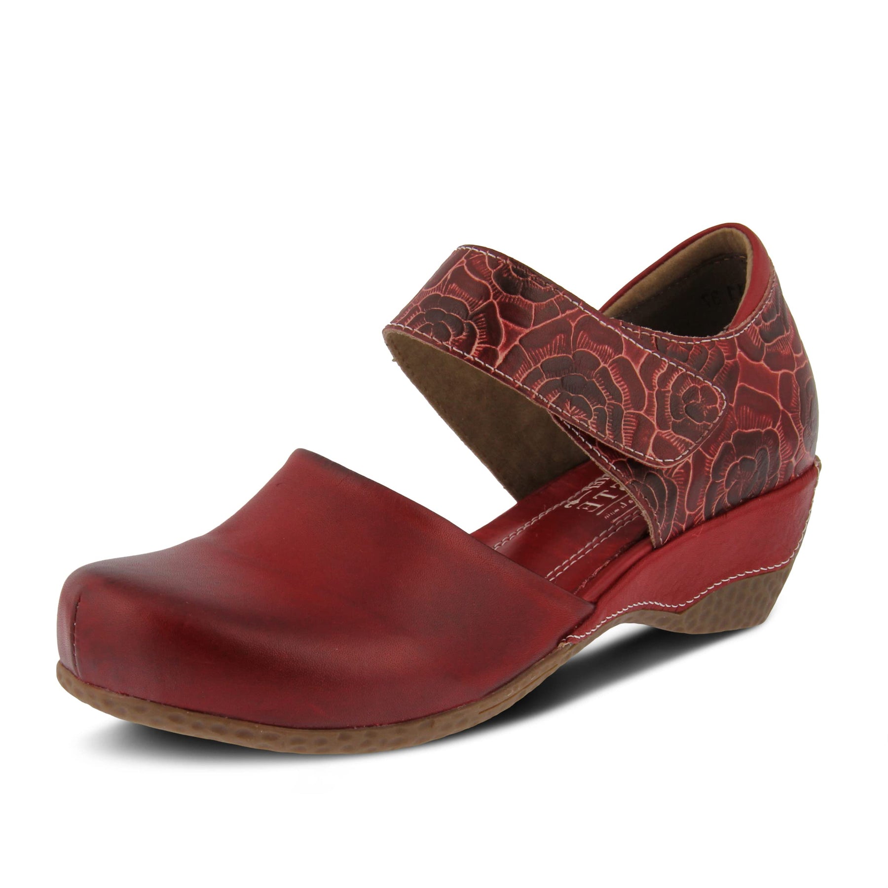 L'Artiste Style: Gloss-Pansy Hand painted leather two-piece Mary-Jane with hooks and loops wide strap fastening. Beautiful floral two-tone leather quarters with padded heel topline. Heel Height (approximately): 1 3/4" Platform Height (approximately): 1/4" Features: -Beautiful combination of hand painted, burnished and polished and two tone floral embossed leather -Round toe silhouette and padded heel topline -Soft textile lining -Imitation leather padded insole -Rubber outsole -Imported Disclaimer: L’Artiste products are made with natural tanned leather using traditional hand painting techniques. This unique finishing process is used to create a natural effect with color variations to deliver authentic look and beauty.