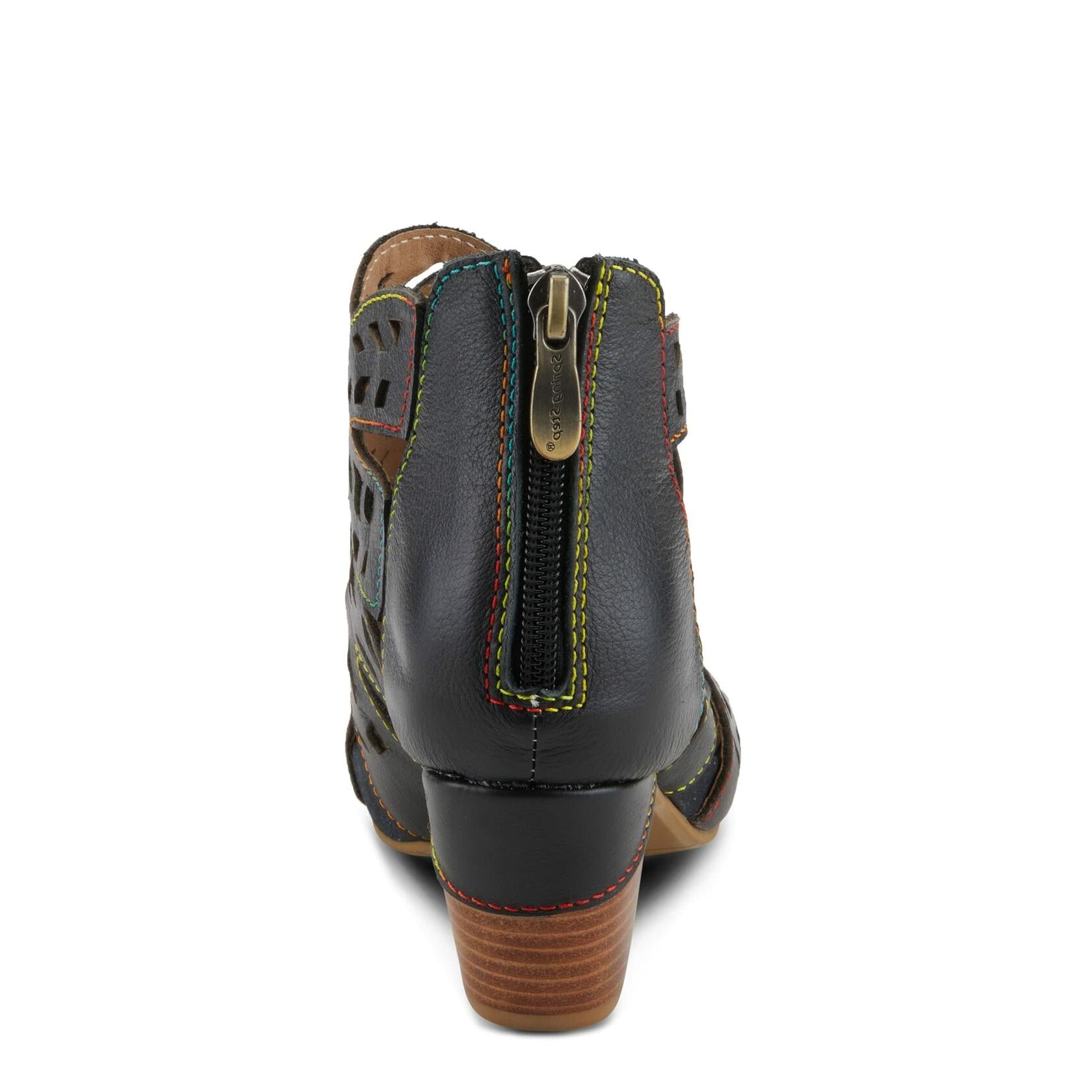 L'Artiste Style: ICON This leaf inspired shoe is perfect if you want to stay tonal but have a flare. These laser cutouts on the shoe give a nice look to your foot and so does the ombre edging. Upper: Leather Lining: Synthetic Insole: Synthetic Outsole: Rubber Closure: Zipper Heel Height: 2.50" Platform Height: 3/4" Features: Disclaimer: L'Artiste products are made with natural tanned leather using traditional hand painting techniques. This unique finishing process is used to create a natural effect with color variations to deliver authentic look and beauty.