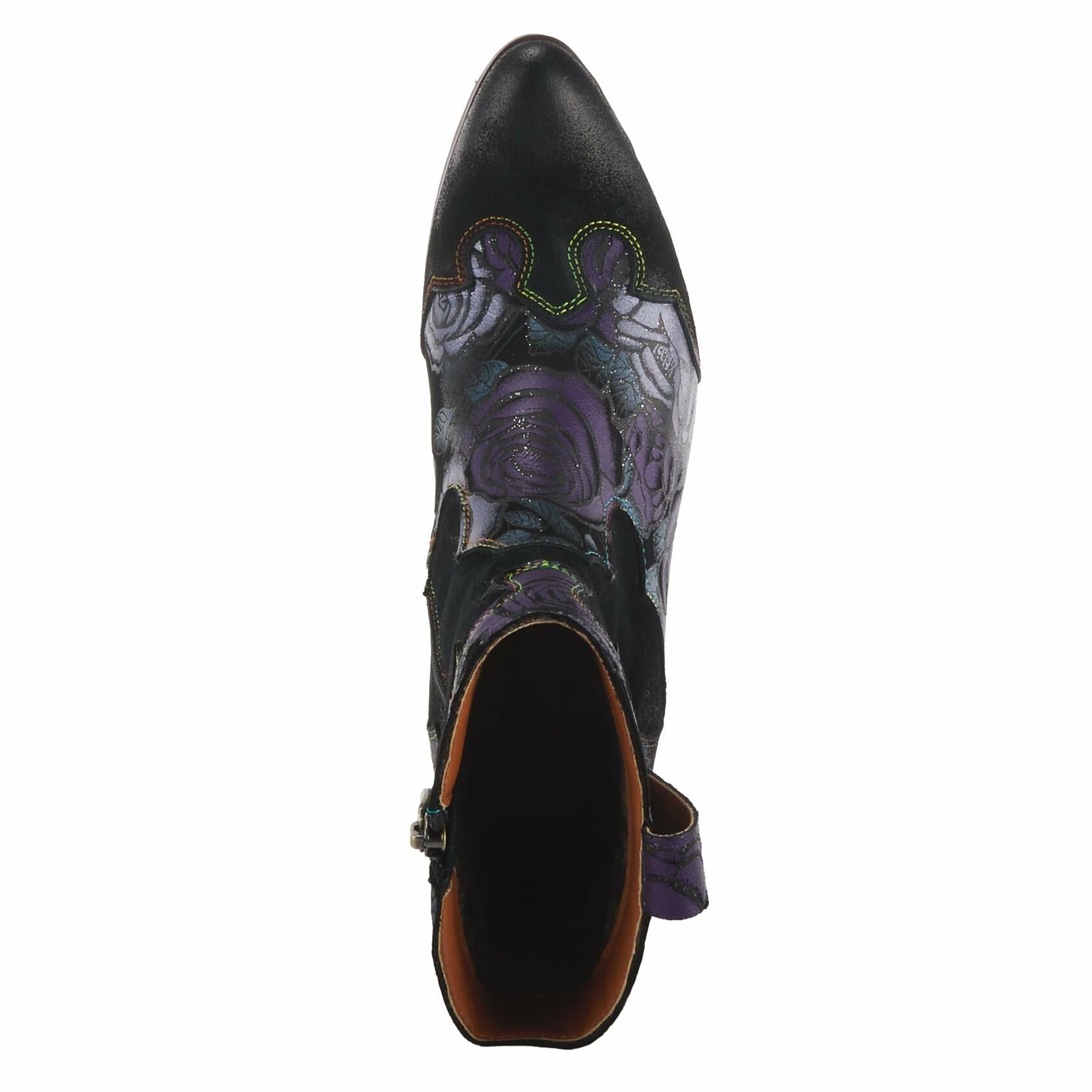 Spring Step L'Artiste Ladyluck Booties for Women - Floral Leather and Suede Women's Chelsea Boots - Western Ankle Boots for Women with Low Heel - Purple US 8.5