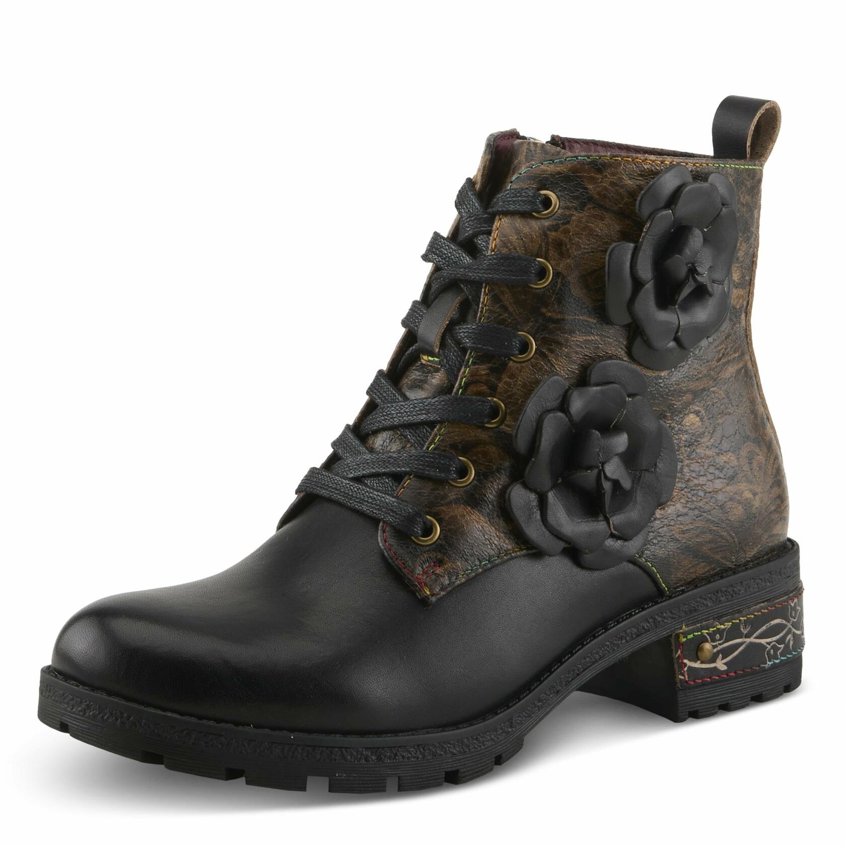 Spring Step L'Artiste Martinela Heeled Booties | Floral Appliqué Leather Ankle Boots with Artistic Touch