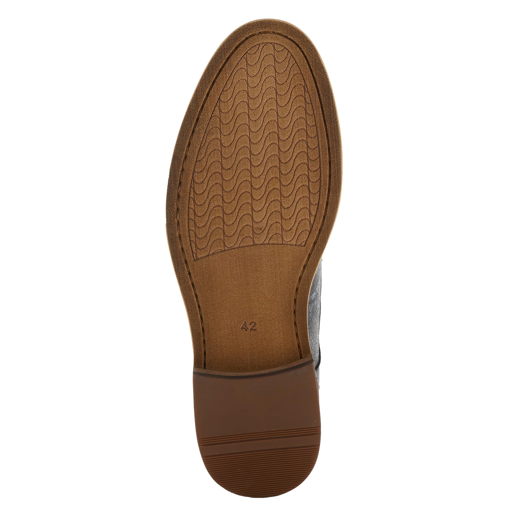 L'ARTISTE Style: LERON Add a touch of sophistication to your wardrobe with our men’s oxford loafer featuring a metallic hue and mixed materials. With a lace-up closure for easy on and off, this shoe offers both style and comfort. Designed with the highest quality materials, our oxford loafer provides unbeatable comfort that sets it apart from the rest, making it the perfect choice for the modern man who demands both fashion and function. Upper: Leather, Synthetic Lining: Microsuede, Synthetic, Velvet Insole: Synthetic Outsole: Rubber Closure: Lace-up Heel Height: 1" Features: - Arch Support, Comfort, Flexible Sole - Removable Insole, Memory Foam - Padded Insole, Premium Fit Recommendation: True to Size Disclaimer: L’Artiste products are made with natural tanned leather using traditional hand painting techniques. This unique finishing process is used to create a natural effect with color variations to deliver authentic look and beauty.