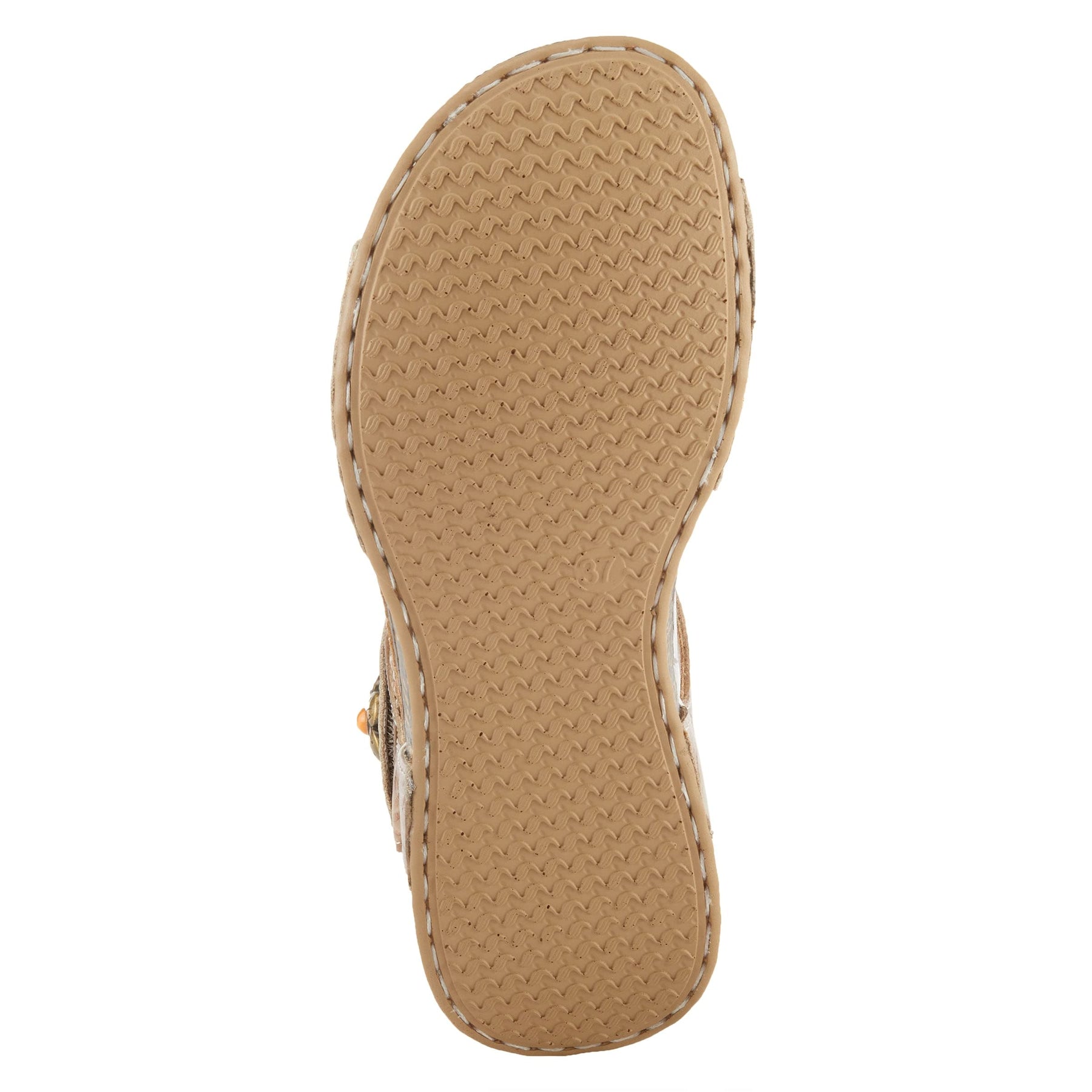 L'Artiste Style: POPULAR This corked sandal has double hook and loop paired with an antiqued metal embossed flower for fashionable leisure. This asymmetrical braided side strap and the back strap hugs your foot and gives you all day support. Upper: Leather Lining: Synthetic Insole: Microfiber Outsole: Polyurethane Closure: Hook&Loop Heel Height: 1.25" Platform Height: 1/2" Features: - Adjustable, Comfort, Padded Insole Disclaimer: L'Artiste products are made with natural tanned leather using traditional hand painting techniques. This unique finishing process is used to create a natural effect with color variations to deliver authentic look and beauty.