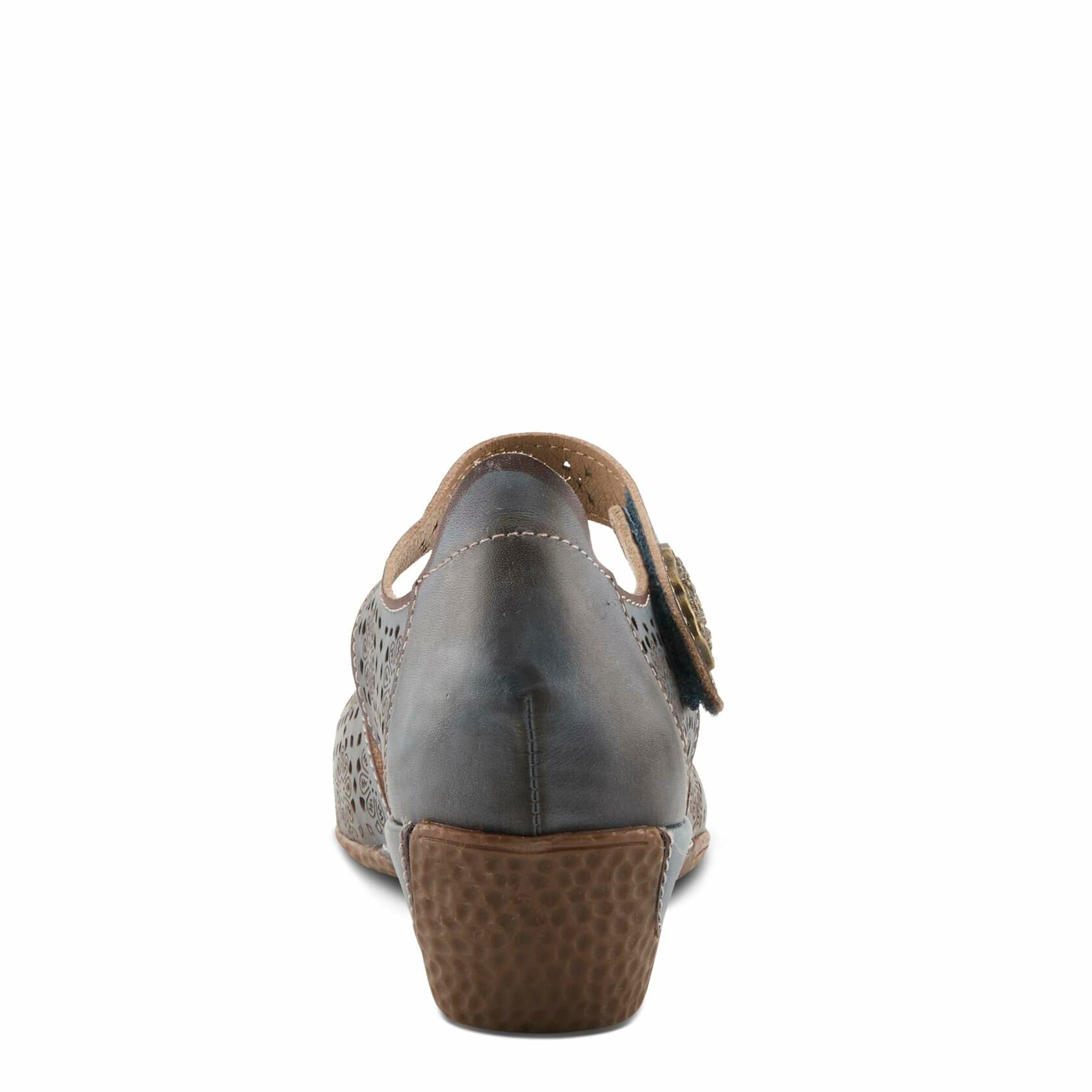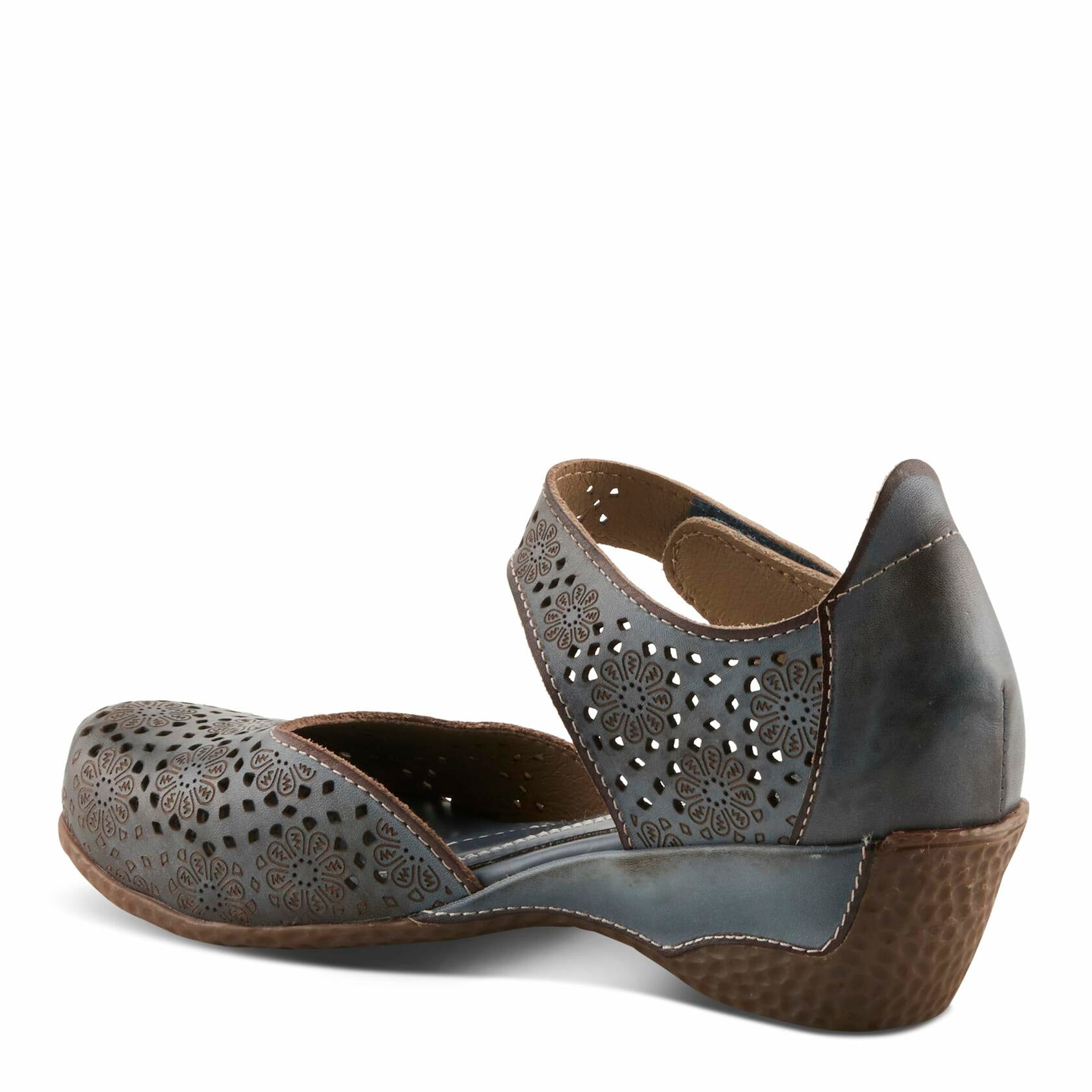 L'Artiste Style: AMERICANA No boring sandals here the Americana adds a unique flare to your everyday wedged sandal. This embossed floral decorative buckle compliments the shoe as well as the perforated floral pattern and cut-outs. Upper: Leather Lining: Synthetic Insole: Synthetic Outsole: Rubber Closure: Hook&Loop Heel Height: 2" Platform Height: 3/4" Features: - Adjustable, Comfort, Footbed Disclaimer: L'Artiste products are made with natural tanned leather using traditional hand painting techniques. This unique finishing process is used to create a natural effect with color variations to deliver authentic look and beauty.