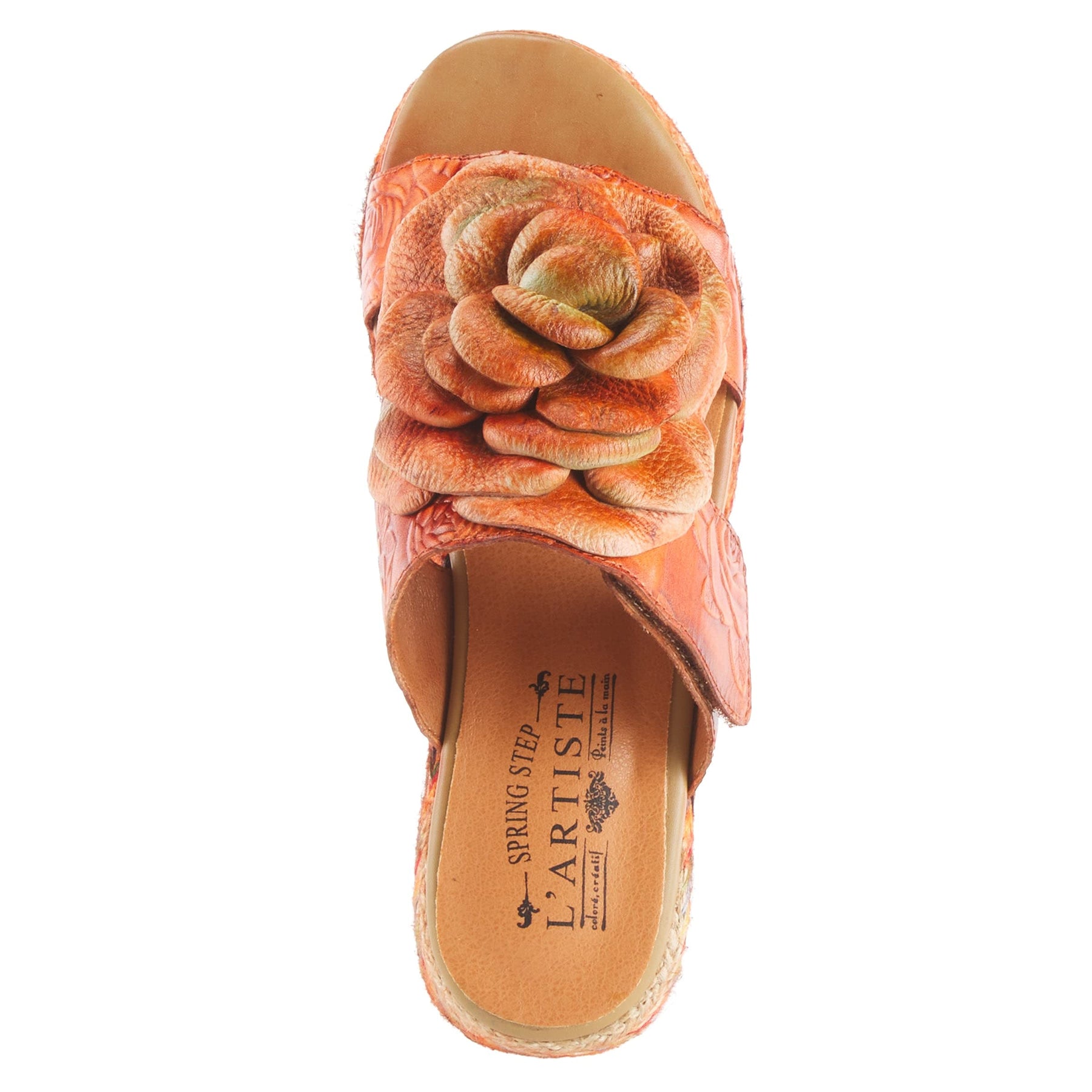 L'Artiste Style: BALHARBOR Take these to a beautiful harbor dinner and have the time of your life. These shoes feature a multi color jute wrap with a 3-dimensional flower. Super dreamy and comfortable you will want to wear these all day. Upper: Leather Lining: Synthetic Insole: Synthetic Outsole: Polyurethane Closure: Slip-on Heel Height: 1.75" Platform Height: 1" Features: - Hand-painted Disclaimer: L'Artiste products are made with natural tanned leather using traditional hand painting techniques. This unique finishing process is used to create a natural effect with color variations to deliver authentic look and beauty.