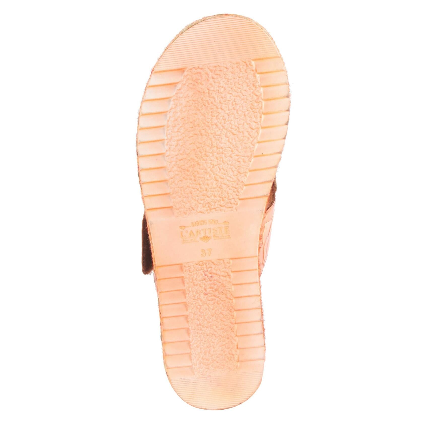 L'Artiste Style: BALHARBOR Take these to a beautiful harbor dinner and have the time of your life. These shoes feature a multi color jute wrap with a 3-dimensional flower. Super dreamy and comfortable you will want to wear these all day. Upper: Leather Lining: Synthetic Insole: Synthetic Outsole: Polyurethane Closure: Slip-on Heel Height: 1.75" Platform Height: 1" Features: - Hand-painted Disclaimer: L'Artiste products are made with natural tanned leather using traditional hand painting techniques. This unique finishing process is used to create a natural effect with color variations to deliver authentic look and beauty.
