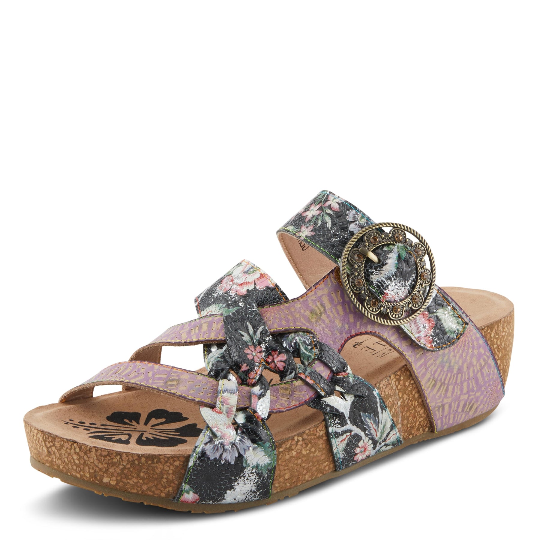 Spring Step L'Artiste Women's BRADY Hand-Painted Floral Cork Wedge Sandals Lilac Multi EU 41 / US 9.5-10