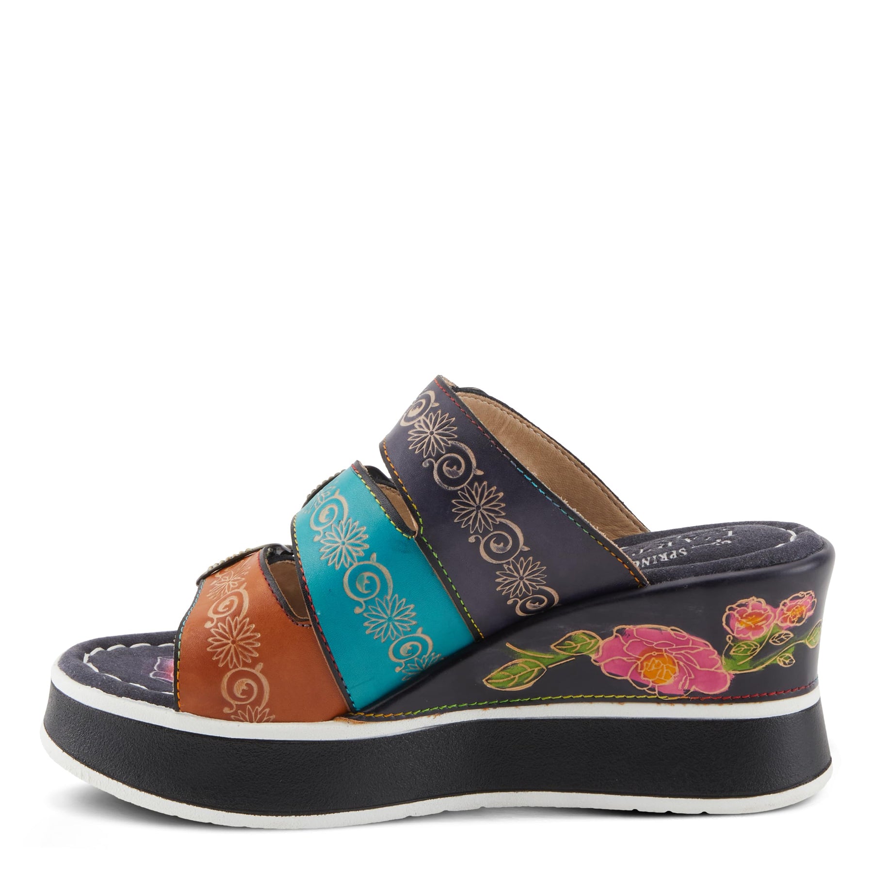 Spring Step L'Artiste Women's CALIGAL Hand-Painted Lightweight Platform Wedges Navy Multi EU 39 / US 8.5