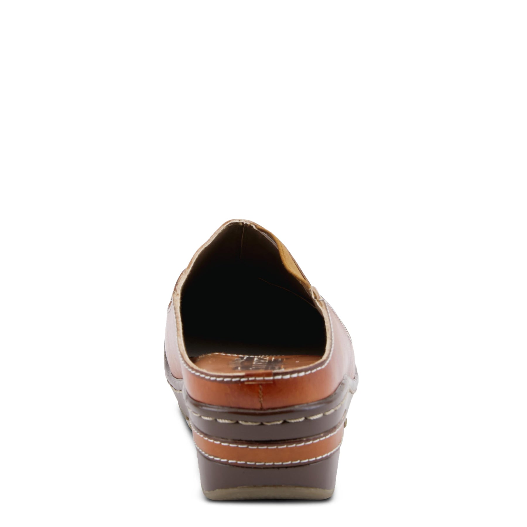 L'Artiste Style: Chino Hand painted, open-back, leather clog with elastic piecing and contrast embossed design. Heel Height (approximately): 2" Features: -Round toe, hand painted leather, elastic side inlay, contrast stitch detail, leather pieced heel. -Synthetic leather lining. -Synthetic leather and textile padded insole. -PU outsole and Rubber sole. -Imported. Disclaimer: L’Artiste products are made with natural tanned leather using traditional hand painting techniques. This unique finishing process is used to create a natural effect with color variations to deliver authentic look and beauty.