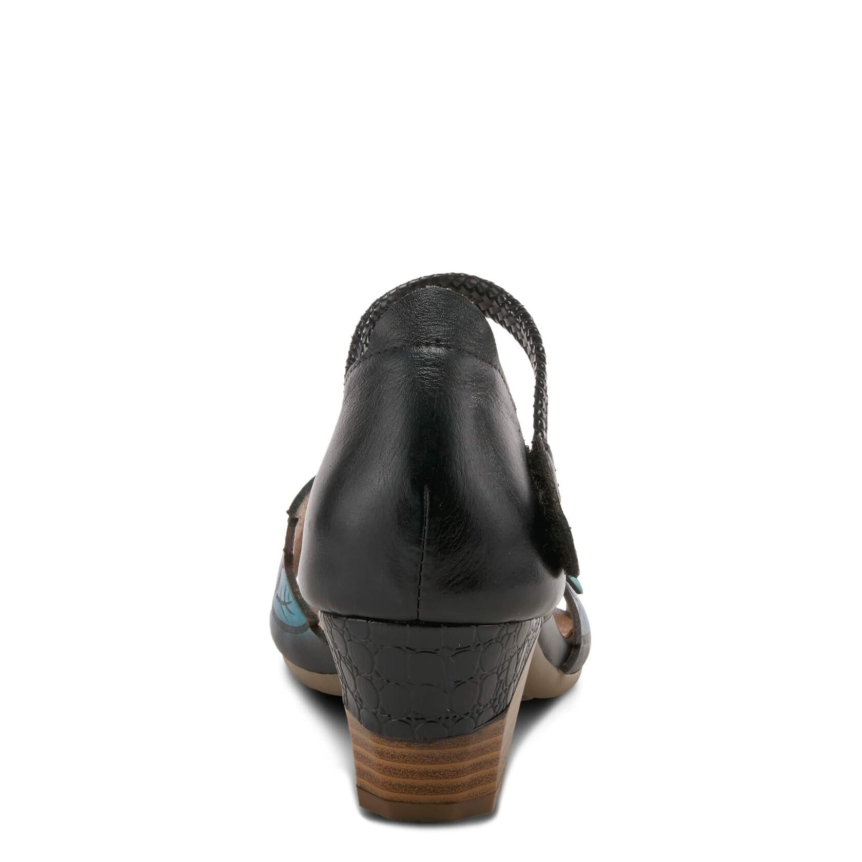 L'Artiste Style: COMPELLING Maryjane style closed back sandal with braided hook and loop ankle strap on a pentagon shaped croco printed inlay and stacked look heel, featuring a trio of 2-tone blossoms and etched leaves with center etched antique pyramid spots. Upper: Leather Lining: Synthetic Insole: Synthetic Outsole: Rubber Closure: Hook&Loop Heel Height: 2 1/2" Platform Height: 1/2" Features: - Adjustable, Comfort, Hand-painted, Padded Insole, Premium Disclaimer: LArtiste products are made with natural tanned leather using traditional hand painting techniques. This unique finishing process is used to create a natural effect with color variations to deliver authentic look and beauty.