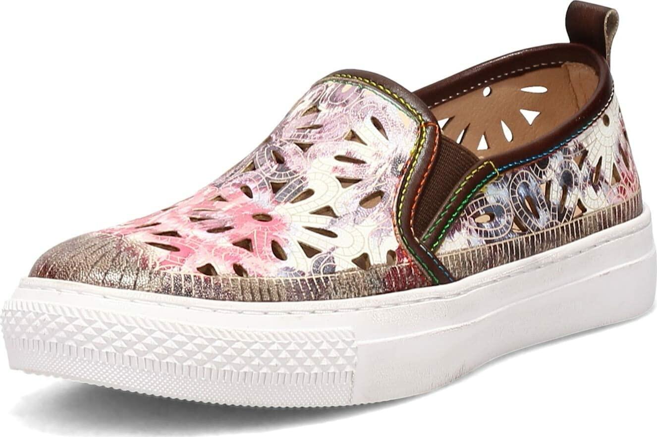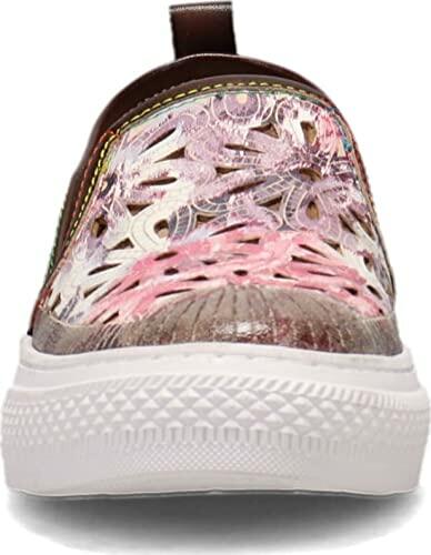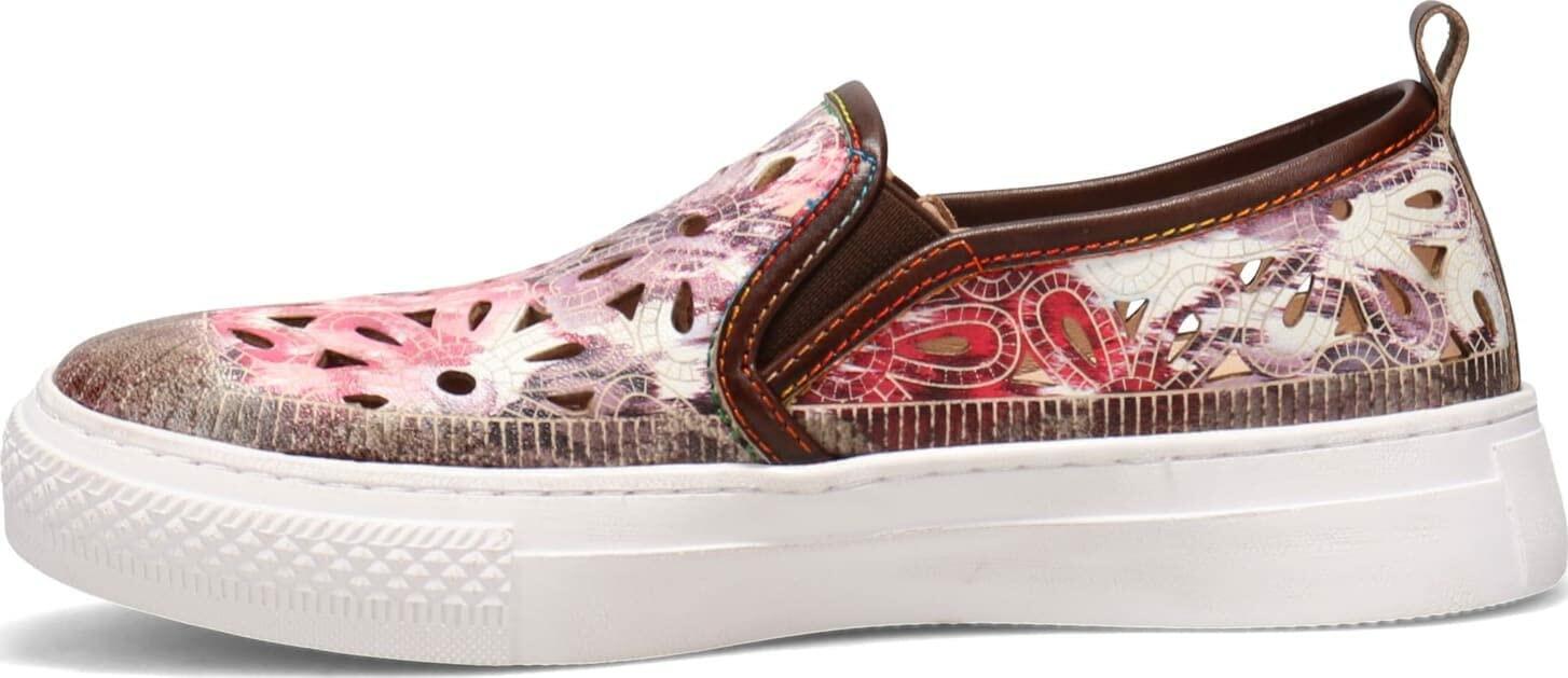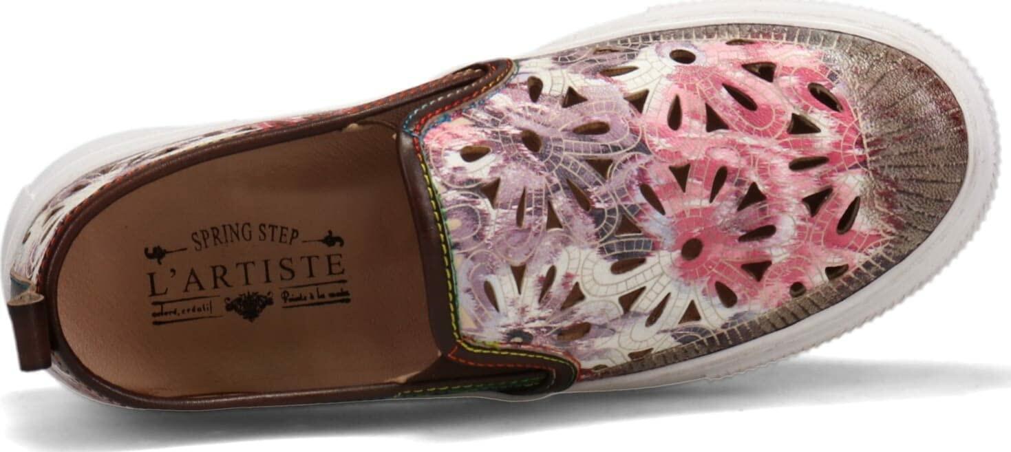 Women's LArtiste by Spring Step, Denofeden Slip-On. This cute slip-on style is like a work of art for your feet! Featuring a fun mix of hand-painted colors and textures, this casual slip on will take your look to the next level. Hand painted leather uppers with laser cut and stitching accents in a beautiful floral pattern Slip on style for an easy on and off with stretch gore panels Smooth manmade linings Padded footbed for added comfort Rubber outsole provides added durability. Heel Height of 1.00 inches