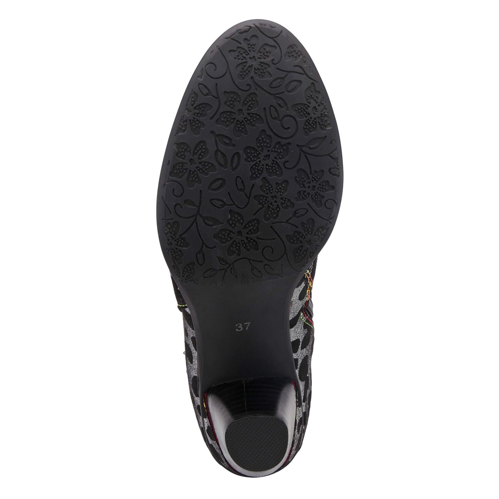 L'Artiste Style: Dessa Step out in style and comfort in the perfect bootie for all day and into the night pleasure. Contrasting metallic printed suede kaleidoscope swirls meet colored animal print textile. Taffeta ruffle edged collar, studded welt sole and an inlay animal print stacked cone heel add to the allure. With her softly padded footbed and inside easy on off zipper, Dessa will surely become your favorite go-to style all season long. Attributes: - Heel Height: 2 3/4" - Platform Height: 3/8" - Upper: Micro suede, Suede - Lining: Textile, Velvet, Synthetic Leather, Printed - Insole: Synthetic Leather - Outsole: Rubber - Boot Shaft: 4 1/2" - Boot Circum.: 10" - Closure: Zipper - Features: Comfort, Padded Insole, Premium, Textured Imported Disclaimer: L’Artiste products are made with natural tanned leather using traditional hand painting techniques. This unique finishing process is used to create a natural effect with color variations to deliver authentic look and beauty.