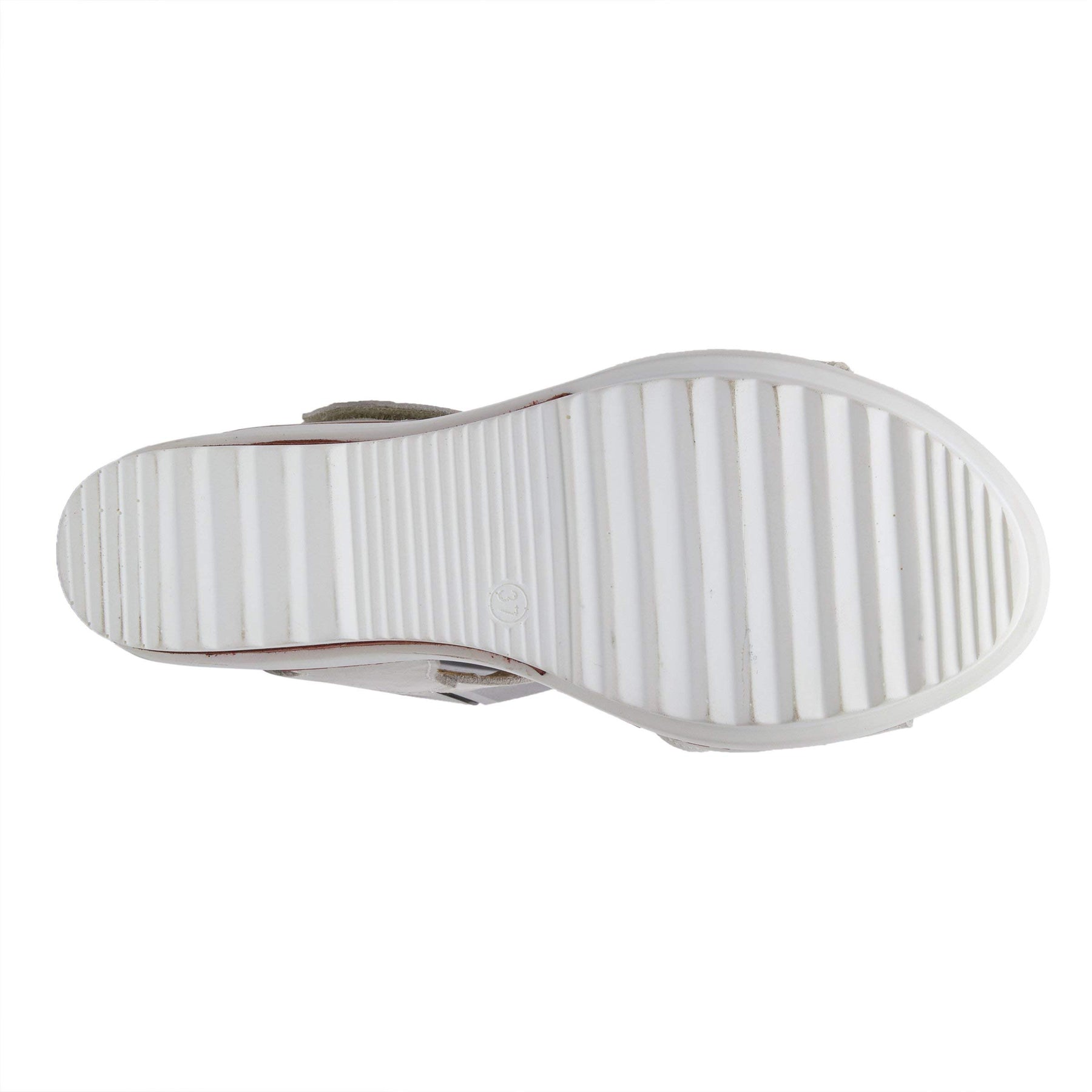French inspired, premium leather asymetrical sandal featuring a total custom fit design with three (3) adjustable hook and loop straps and tonal stitchwork all on a leather-wrapped, comfort wedge with a platform. Sandalia asimtrica de piel de primera calidad de inspiracin francesa, con un diseo de ajuste personalizado total con tres (3) correas ajustables de gancho y bucle y puntadas tonales, todo en una cua cmoda y envuelta en piel con plataforma.