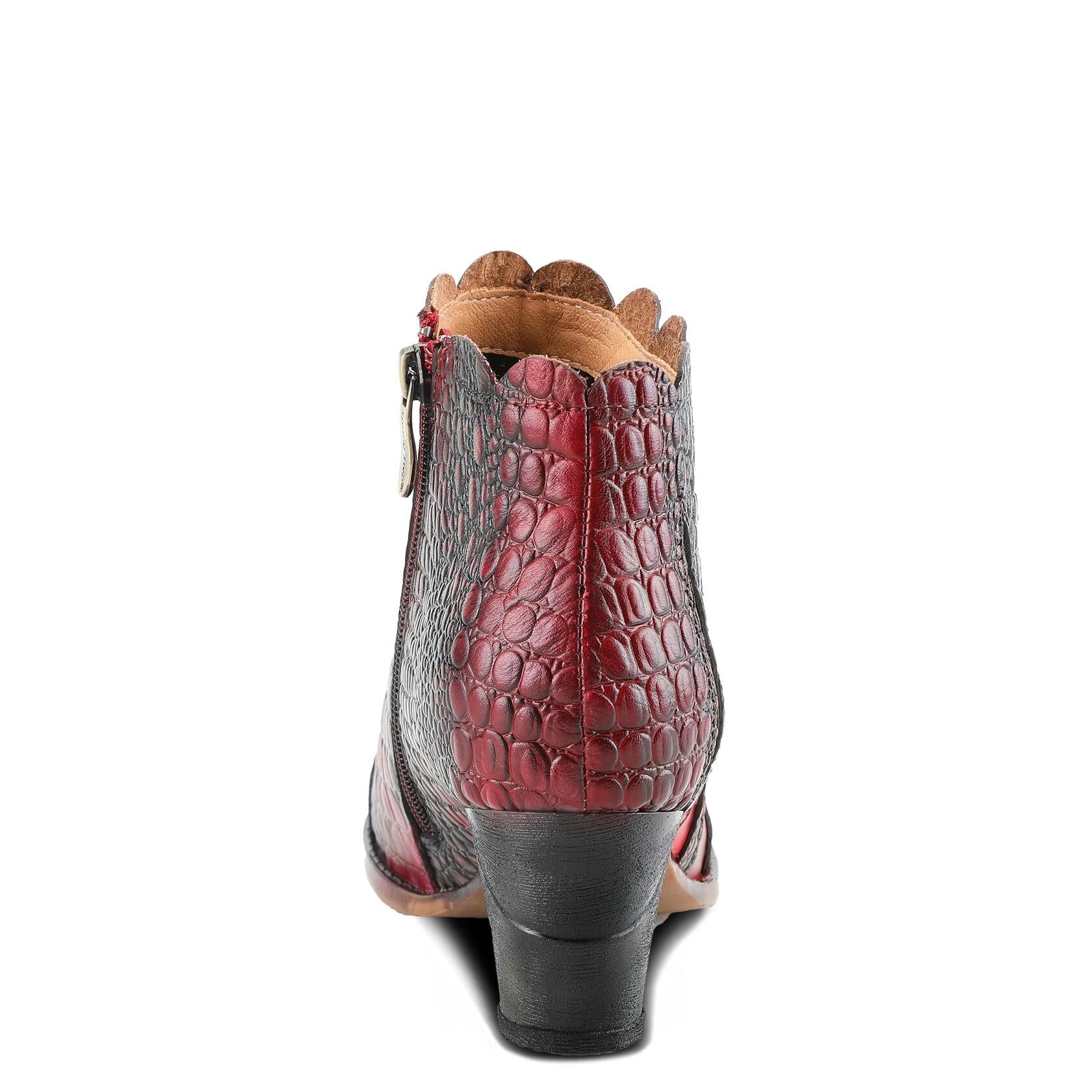 L'ARTISTE Style: EXTROVERT Stunning debossed and smooth leather bootie featuring an oversized Croco-inspired design with a scalloped collar on a comfortable heel. Features: - Comfort, Flexible Sole,