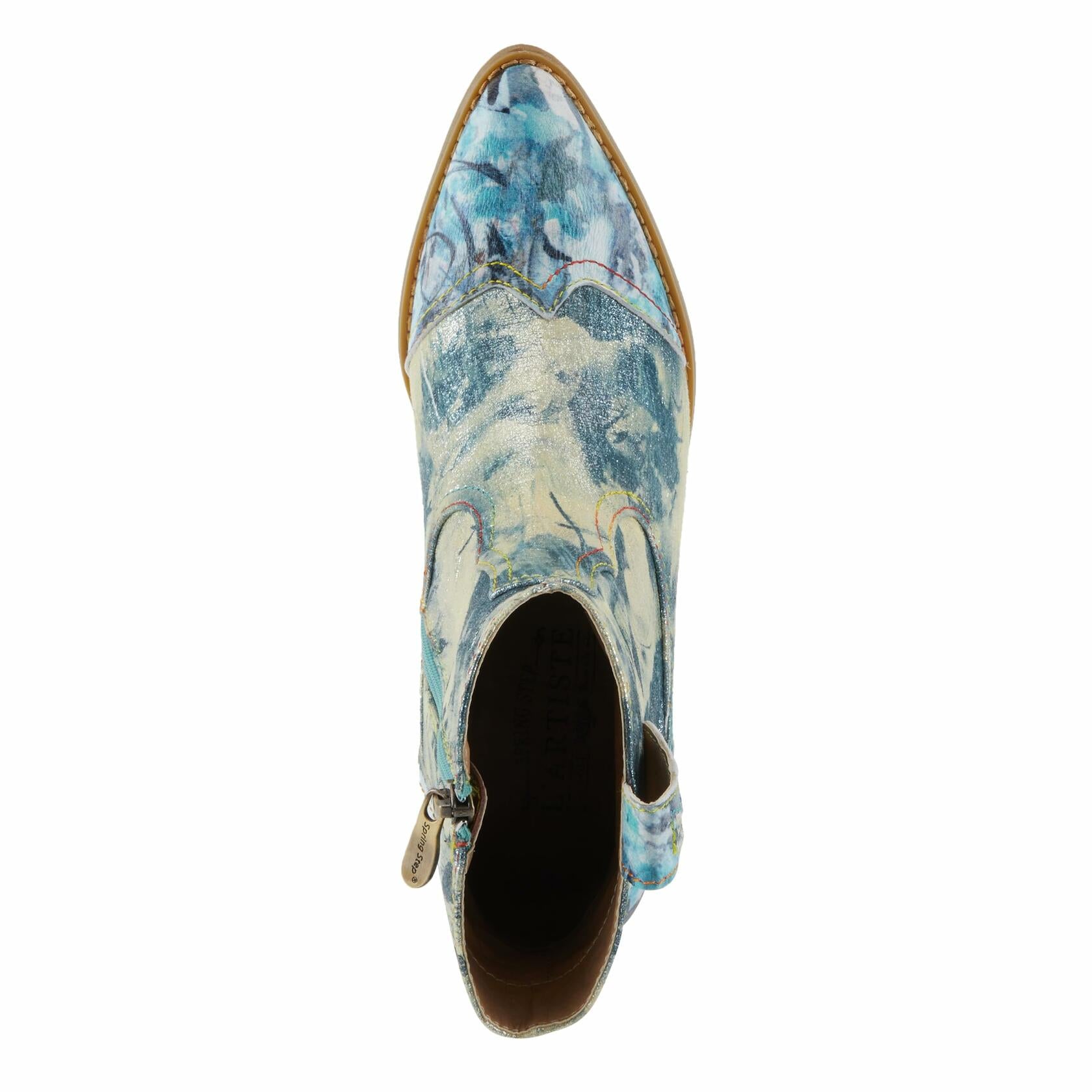 Spring Step L'Artiste Women's FLIRTINI Western Summer Boots - Metallic Leather, Pull Tabs, Low Stacked Heel Blue Multi EU 38 / US 7.5-8