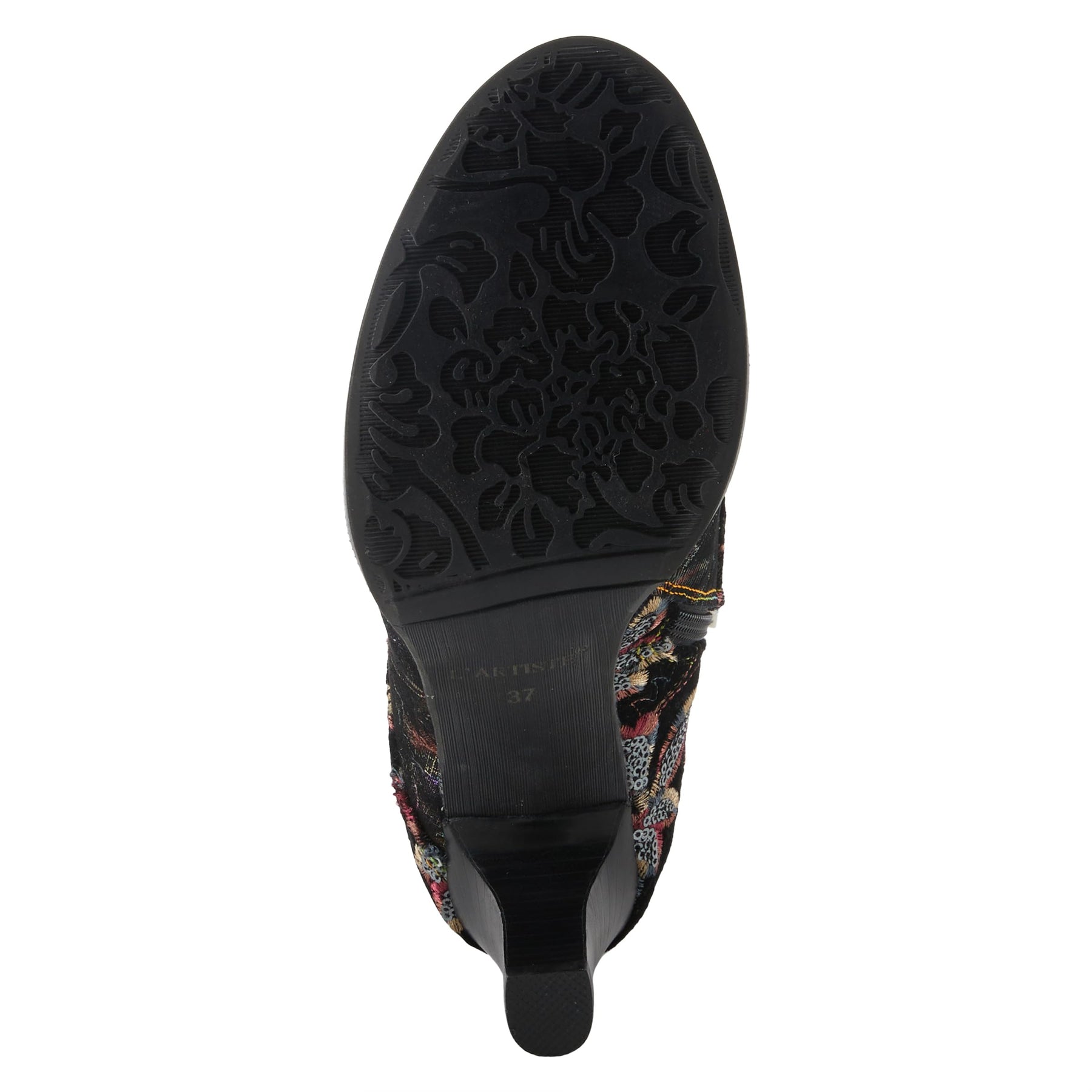 L'ARTISTE Style: GLISTEN This dazzling boot is a showstopper with its sequined upper and beautifully hand-crafted floral pattern, making it a perfect statement piece for any occasion. The lace-up and zipper closure provides a secure and comfortable fit, while the perfect heel height makes it wearable for everyone. The studded welt design adds a touch of edginess, completing the look of this stunningly designed boot. Upper: Leather, Synthetic, Textile Lining: Synthetic, Textile Insole: Synthetic, Textile Outsole: Rubber Closure: Lace-up, Zipper Heel Height: 3" Shaft Height: 7 1/2" Circumference: 9 1/2" Features: - Comfort, Flexible Sole - Padded Insole, Premium, Textured Fit Recommendation: True to Size Disclaimer: L’Artiste products are made with natural tanned leather using traditional hand painting techniques. This unique finishing process is used to create a natural effect with color variations to deliver authentic look and beauty.
