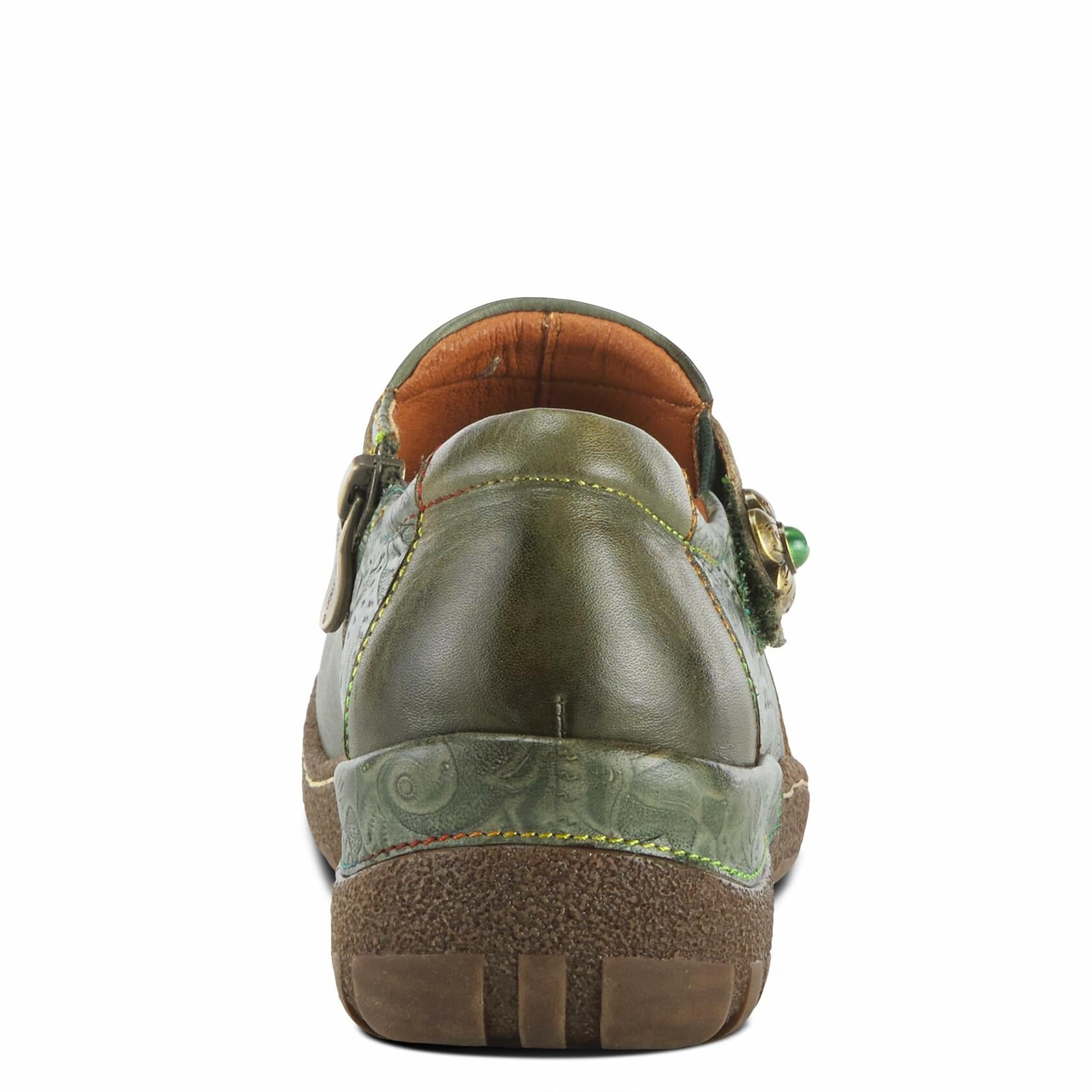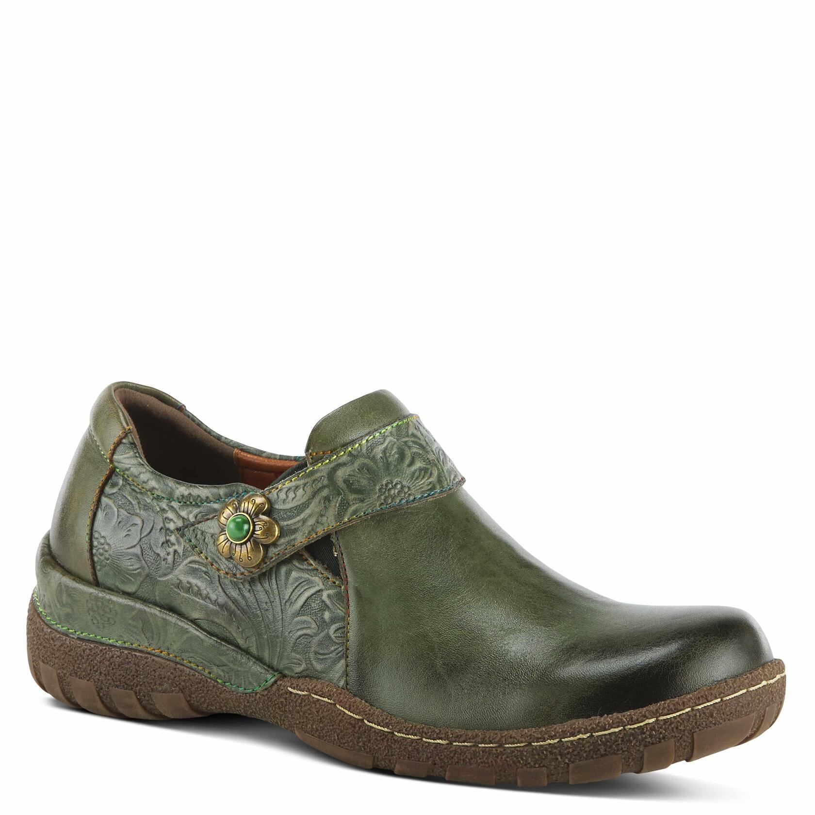 L'ARTISTE Style: GYARADOS The closed back burnished clog with a zipper and hook-and-loop closure is a stylish and functional footwear choice, with a metal flower applique that adds just the right amount of flare. The hand-painted embossed floral pattern gives the clog a unique and artistic character, while the subtle lift adds a touch of height without sacrificing comfort. Upper: Leather Lining: Synthetic, Textile, Velvet Insole: Synthetic, Textile Outsole: Rubber Closure: Hook&Loop, Zipper Heel Height: 1 1/2" Features: - Arch Support, Comfort, Flexible Sole - Hand-painted, Premium, Stretchable, Textured Fit Recommendation: True to Size Disclaimer: LArtiste products are made with natural tanned leather using traditional hand painting techniques. This unique finishing process is used to create a natural effect with color variations to deliver authentic look and beauty.