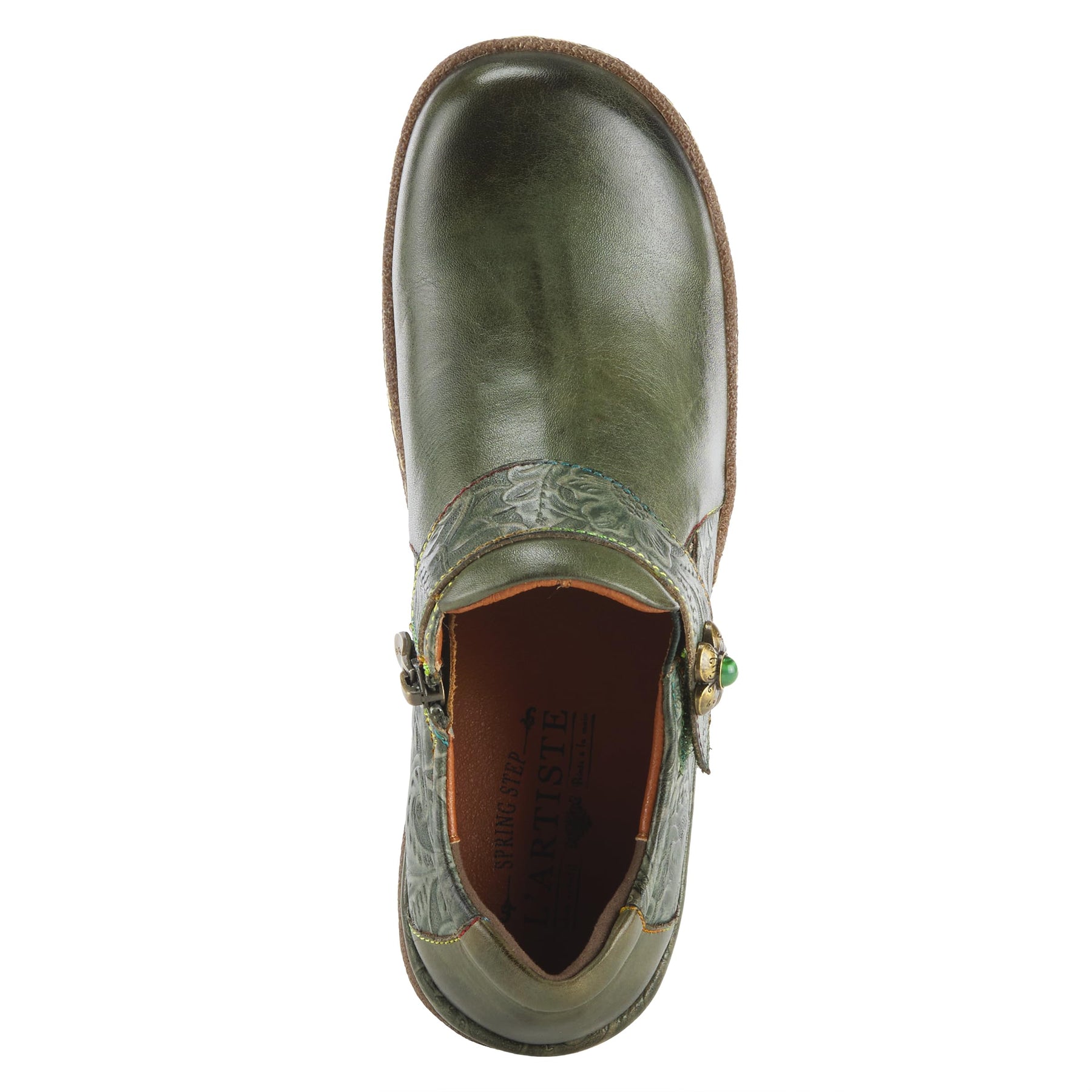 L'ARTISTE Style: GYARADOS The closed back burnished clog with a zipper and hook-and-loop closure is a stylish and functional footwear choice, with a metal flower applique that adds just the right amount of flare. The hand-painted embossed floral pattern gives the clog a unique and artistic character, while the subtle lift adds a touch of height without sacrificing comfort. Upper: Leather Lining: Synthetic, Textile, Velvet Insole: Synthetic, Textile Outsole: Rubber Closure: Hook&Loop, Zipper Heel Height: 1 1/2" Features: - Arch Support, Comfort, Flexible Sole - Hand-painted, Premium, Stretchable, Textured Fit Recommendation: True to Size Disclaimer: LArtiste products are made with natural tanned leather using traditional hand painting techniques. This unique finishing process is used to create a natural effect with color variations to deliver authentic look and beauty.