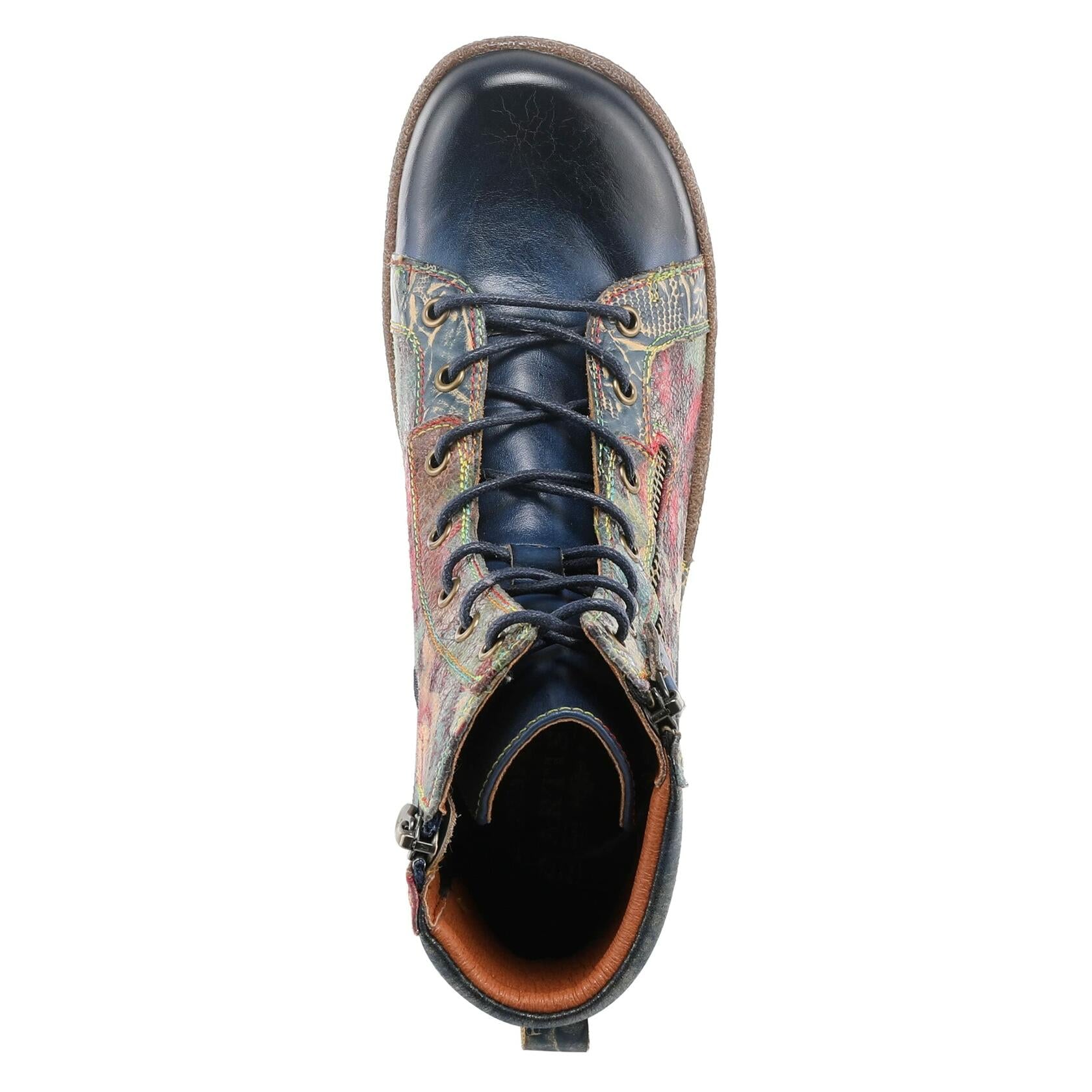L`Artiste Style: Jadeite Genuine leather and printed synthetic leather lace-up boots featuring full length inside zipper and decorative outside zipper and round waxed laces on a flexible sole. Upper: Leather, Synthetic Lining: Synthetic, Velvet Insole: Synthetic Outsole: Rubber Closure: Lace-up, Zipper Heel Height: 1 1/2" Platform Height: 3/4" Shaft Height: 6 " Circumference: 8-10" Features: - Adjustable, Comfort, Hand-painted, Padded Insole Disclaimer: L'Artiste products are made with natural tanned leather using traditional hand painting techniques. This unique finishing process is used to create a natural effect with color variations to deliver authentic look and beauty.