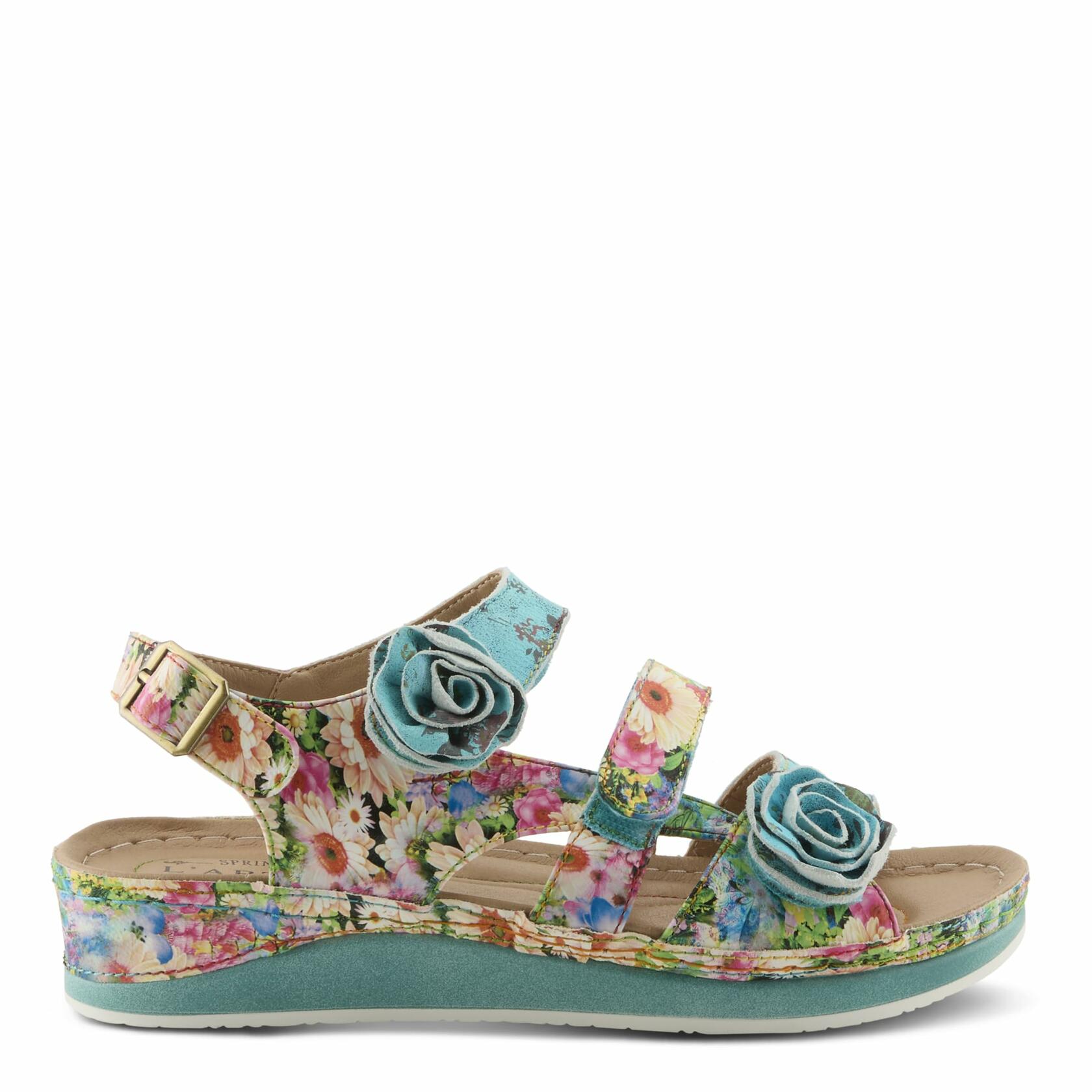 L'Artiste Style: JOELINA-DAZI French inspired design, hand painted leather sandal with triple adjustability. Featuring unique color blocking, two rose buds and our signature rainbow stitching. This is one of our most loved constructions. Upper: Leather and Synthetic Combo Lining: Synthetic Insole: Synthetic Outsole: Polyurethane Closure: Buckle, Hook&Loop Heel Height: 1 1/2" Platform Height: 3/4" Features: - Comfort, Flexible Sole, Hand-painted, Padded Insole, Premium Disclaimer: L'Artiste products are made with natural tanned leather using traditional hand painting techniques. This unique finishing process is used to create a natural effect with color variations to deliver authentic look and beauty.