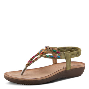L'Artiste Style: KINDNESS This all over snake skin pattern sandal gives just the right amount of spice in your wardrobe. Get adjustability from the hook and loop top strap. This asymmetrical strap with lined flowers followed by a toe loop gives a modern feminine look. Upper: Leather Lining: Synthetic Insole: Synthetic Outsole: Rubber Closure: Slip-on Heel Height: 1.25" Platform Height: 3/4" Features: - Adjustable, Flexible Sole Disclaimer: L'Artiste products are made with natural tanned leather using traditional hand painting techniques. This unique finishing process is used to create a natural effect with color variations to deliver authentic look and beauty.