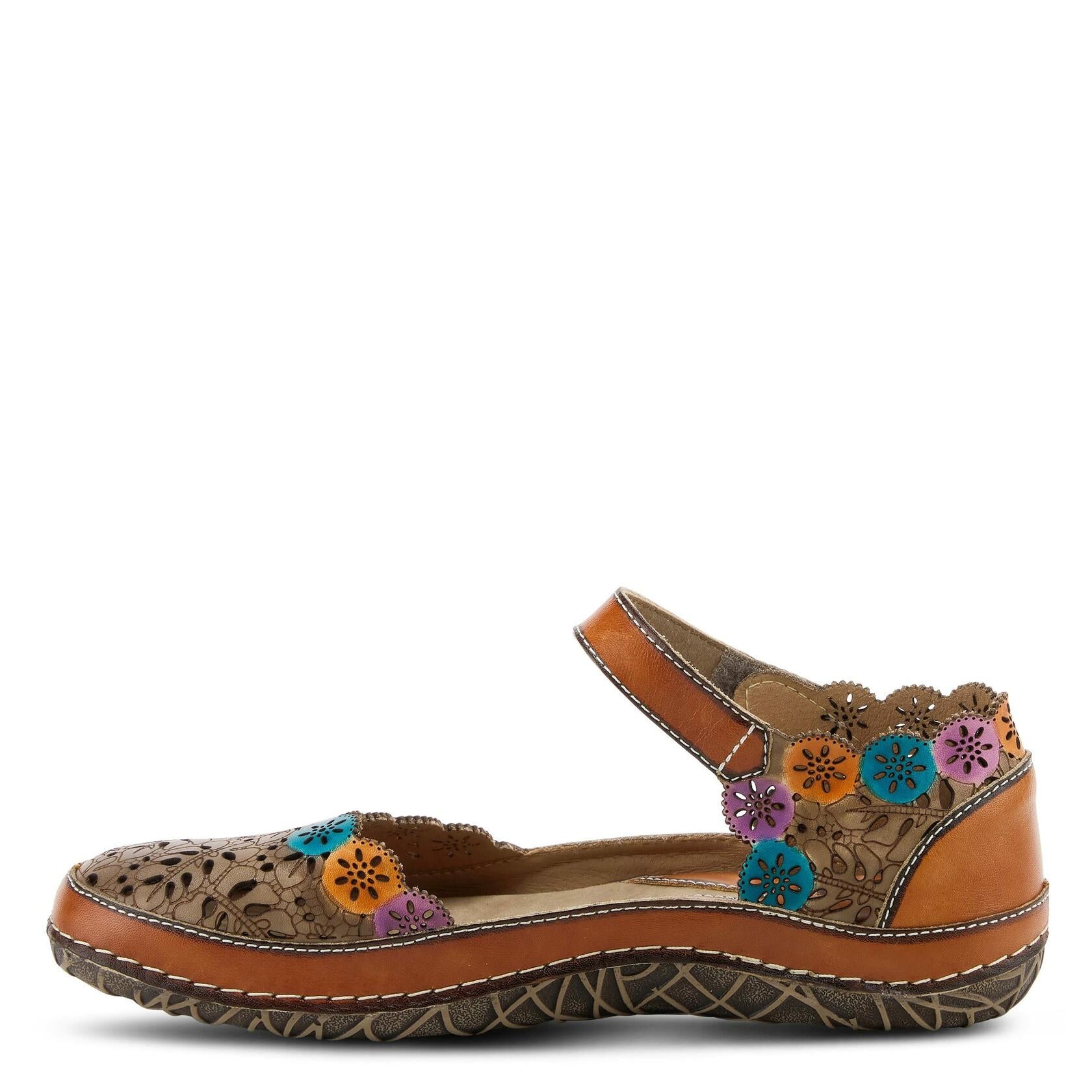 L'Artiste Style: KYSANDRA-FLEUR Parisian style to a classic mary jane shoe featuring hand painted laser floral cutouts and etching design, adjustable strap with hook and loop fastening and soft padded