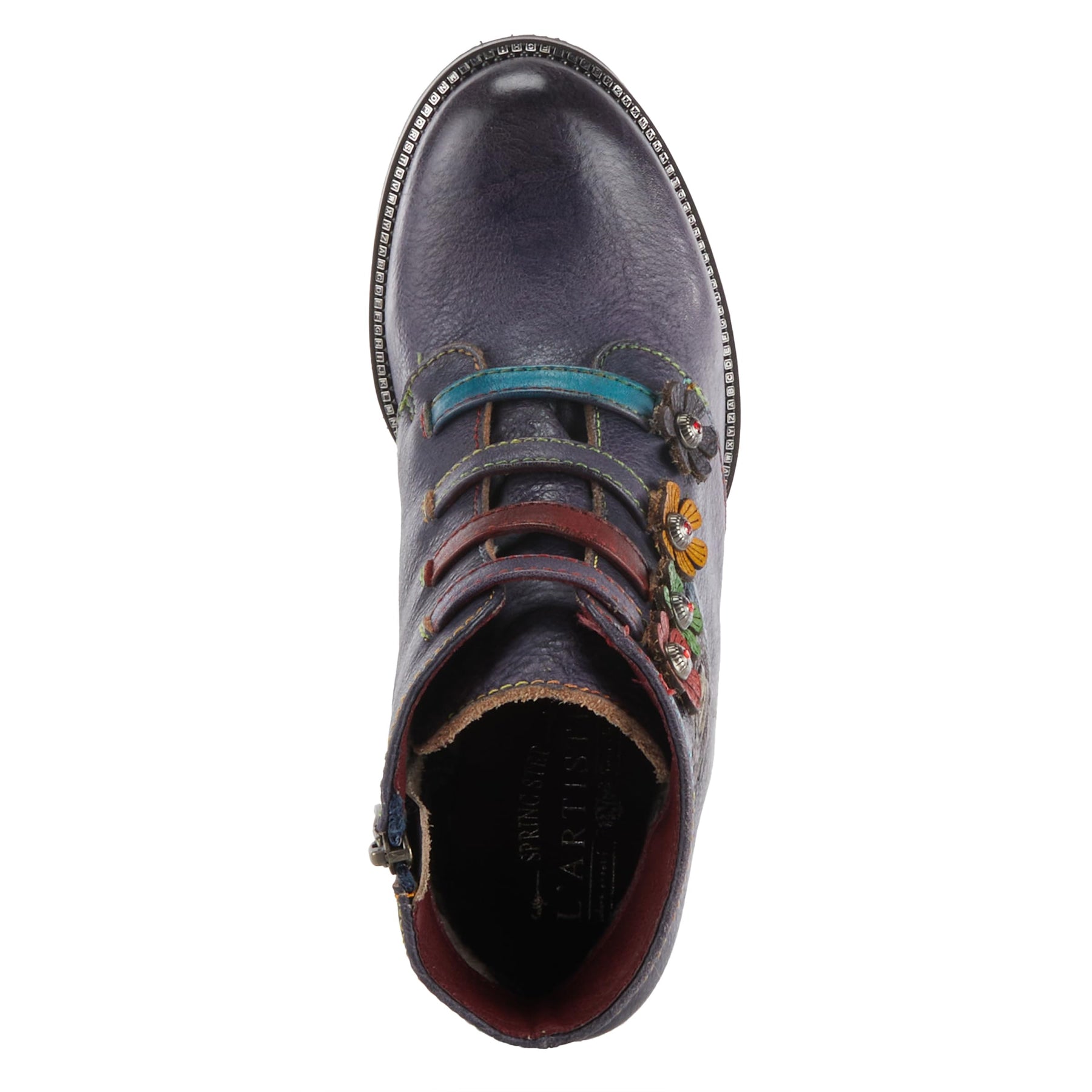 L'ARTISTE Style: MALEEKA Looking for a bootie that is both unique and stylish? Look no further than this one, featuring a hand-painted raised floral detail and stretchy multi-colored straps that end with a colorful flower applique. The super cool abstract geometric heel is a standout feature that will make you the envy of everyone in the room. Not only is this bootie fashionable, its also comfortable thanks to the stretchy straps that allow for a snug fit. Whether paired with jeans or a dress, this bootie is sure to turn heads and make a statement. Upper: Leather Lining: Synthetic, Textile Insole: Synthetic Outsole: Rubber Closure: Hook&Loop, Zipper Heel Height: 2 3/4" Shaft Height: 5" Circumference: 9" Features: - Comfort, Flexible Sole - Hand-painted, Padded Insole, Premium, Textured Fit Recommendation: True to Size Disclaimer: LArtiste products are made with natural tanned leather using traditional hand painting techniques. This unique finishing process is used to create a natural effect with color variations to deliver authentic look and beauty.