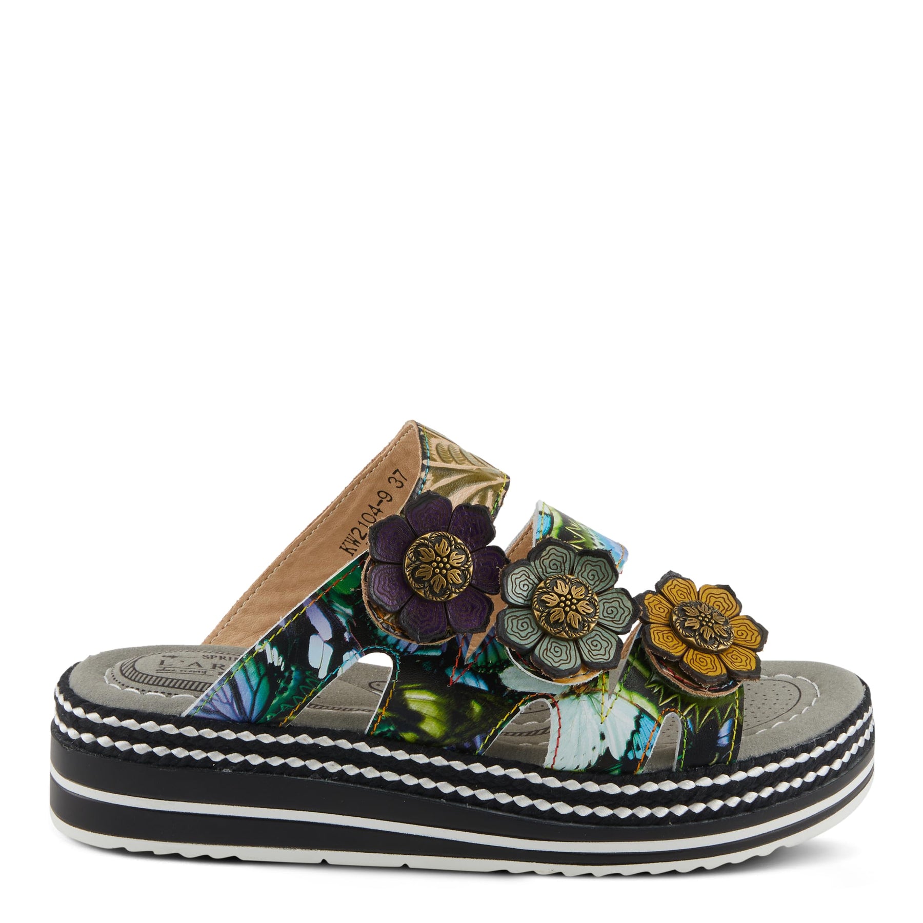 Description Step into the exquisite comfort and charm of L'ARTISTE NAOMI-MONARCH. These slides invite you to unleash your i er butterfly, offering a sensation akin to walking on clouds. Experience all-day comfort with the cushiony footbed that pampers your feet, ensuring a delightful jou ey with every step.