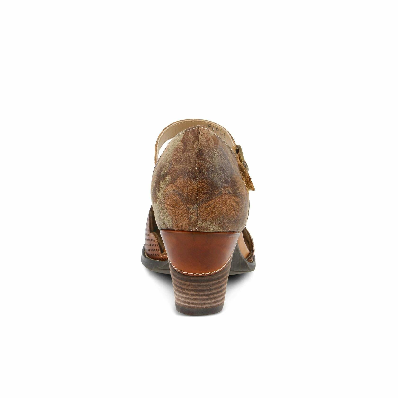 The L'Artiste by Spring Step Parchelle Quarter-Strap is a French-inspired, hand-painted perforated leather d'Orsay with a feminine scalloped topline. Round toe, hand-painted leather, brushed gold