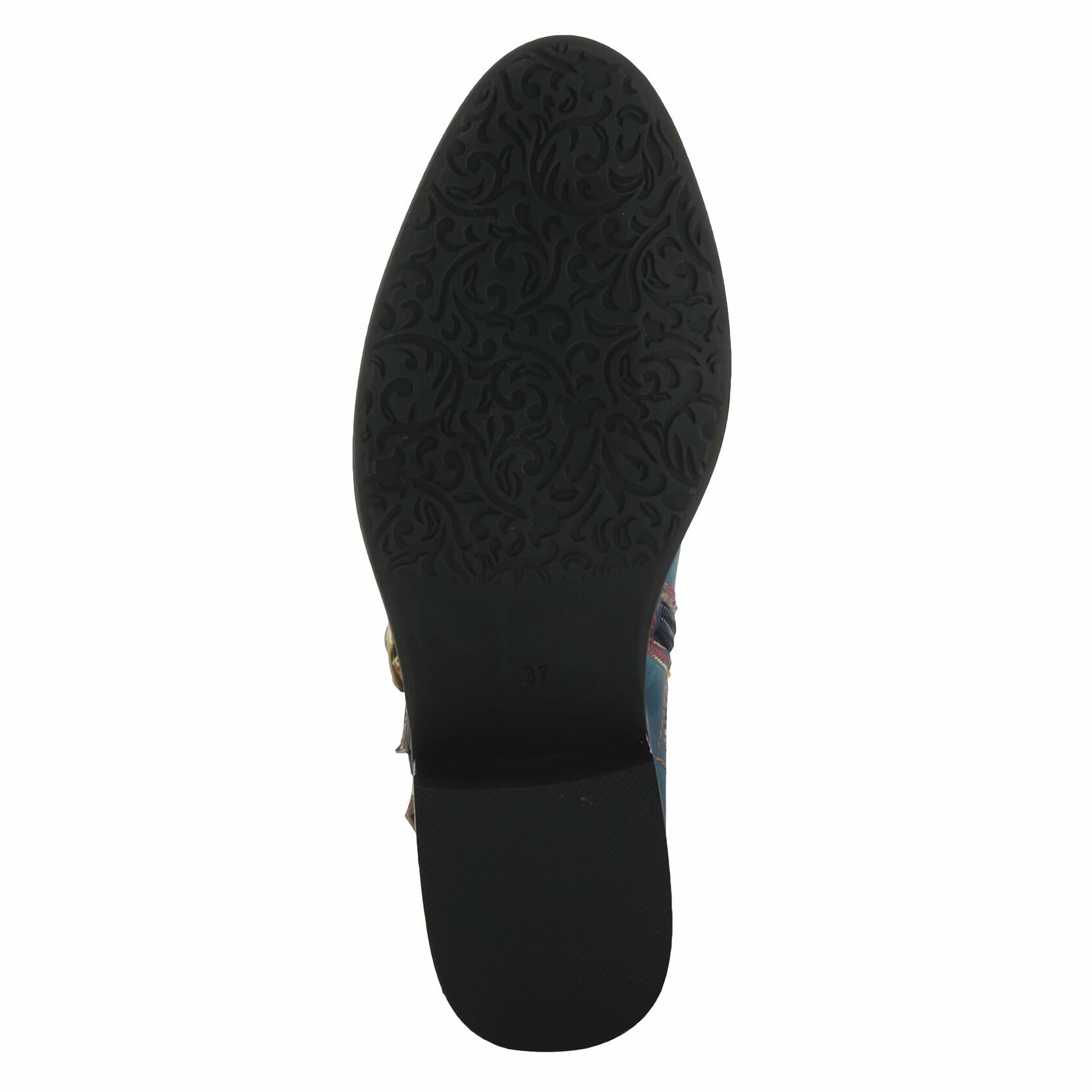 Step out in style with the L'Artiste Vaneyck tall boots, a perfect blend of bold fashion and everyday functionality. Designed for women who love to make a statement, these boots feature a striking multi colored iridescent and metallic upper that adds vibrant color and texture to any outfit. The decorative double buckle applique adds an edgy touch to the design, while the playful rainbow stitching provides an unexpected pop of personality. Combining fashion with practicality, these boots feature both lace up and zipper closures for a secure, customized fit and effortless on and off wear. Comfort is a top priority, with a padded insole and flexible rubber outsole that provide support for all day wear. The 1 1/2" heel height is stylish yet manageable, making these boots ideal for a variety of occasions. With a 13 3/4" shaft height and a circumference of 14–14 1/2", they are designed to fit comfortably while flattering your legs. Crafted from premium materials, including leather, textile, velvet and rubber, these boots combine durability and elegance. The synthetic insole ensures long lasting wear, while the textured and hand painted finish enhances the overall appeal. Discover the perfect combination of artistry, comfort and bold design with these statement boots, designed to keep you looking and feeling your best all day long. Features: Multi colored iridescent and metallic upper. Lace up and zipper closure for a convenient fit. Hand painted leather with unique color variations. Padded insole and flexible rubber sole. Decorative double buckle applique and rainbow stitching.