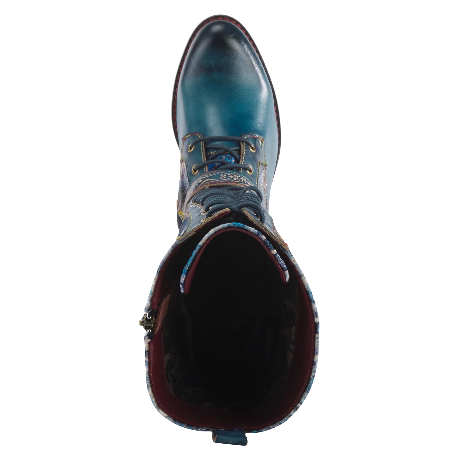 Step out in style with the L'Artiste Vaneyck tall boots, a perfect blend of bold fashion and everyday functionality. Designed for women who love to make a statement, these boots feature a striking multi colored iridescent and metallic upper that adds vibrant color and texture to any outfit. The decorative double buckle applique adds an edgy touch to the design, while the playful rainbow stitching provides an unexpected pop of personality. Combining fashion with practicality, these boots feature both lace up and zipper closures for a secure, customized fit and effortless on and off wear. Comfort is a top priority, with a padded insole and flexible rubber outsole that provide support for all day wear. The 1 1/2" heel height is stylish yet manageable, making these boots ideal for a variety of occasions. With a 13 3/4" shaft height and a circumference of 14–14 1/2", they are designed to fit comfortably while flattering your legs. Crafted from premium materials, including leather, textile, velvet and rubber, these boots combine durability and elegance. The synthetic insole ensures long lasting wear, while the textured and hand painted finish enhances the overall appeal. Discover the perfect combination of artistry, comfort and bold design with these statement boots, designed to keep you looking and feeling your best all day long. Features: Multi colored iridescent and metallic upper. Lace up and zipper closure for a convenient fit. Hand painted leather with unique color variations. Padded insole and flexible rubber sole. Decorative double buckle applique and rainbow stitching.