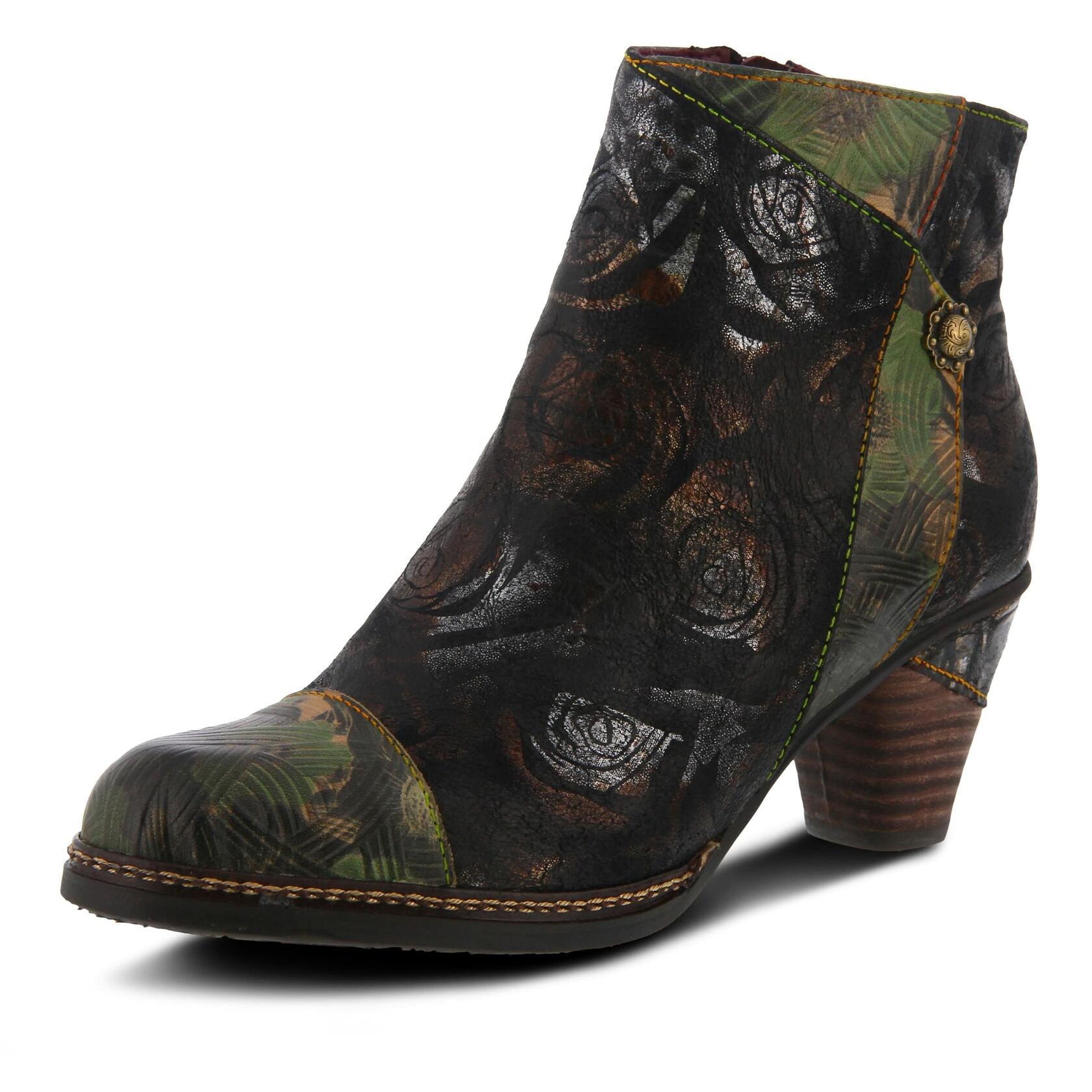 Add some feminine class to your fall lookNaturally tanned leather upper with crushed velvet overlaysSide zipper for easy on/off with an elegant brushed metal pull2 1/2 inch stacked heelDurable rubber