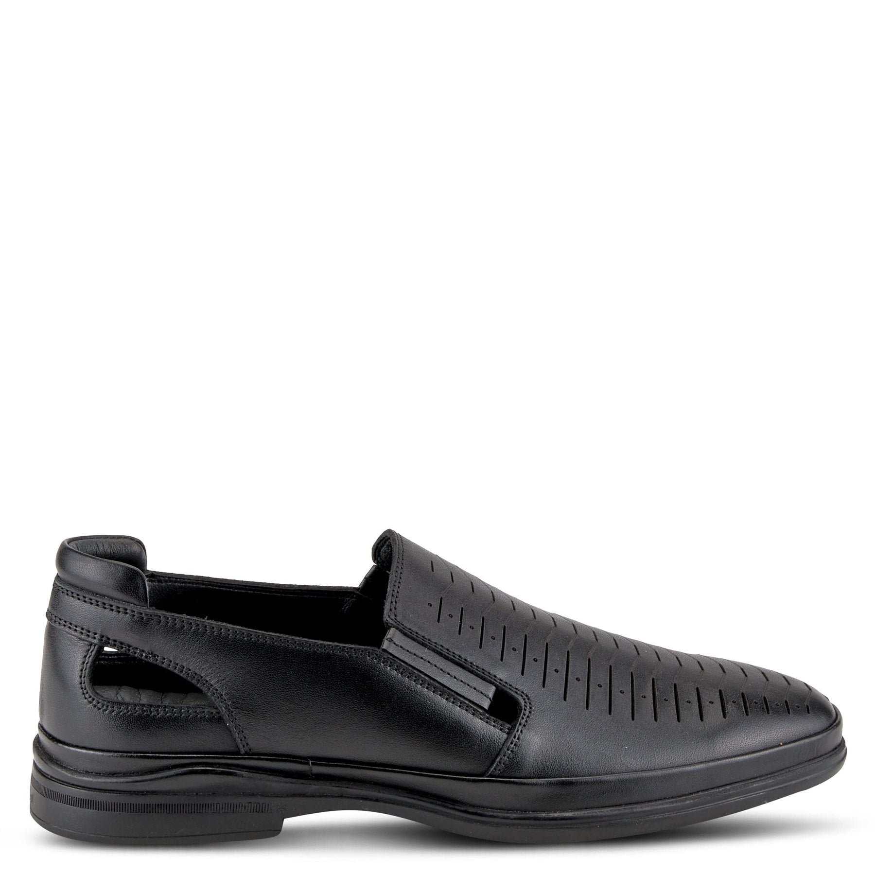 Spring Step Men's Style: BANE The cutouts on the heel gives a unique and breathable feel as well as the perforations. Perfect to walk the town in. Upper: Leather Lining: Leather Insole: Leather Outsole: Rubber Closure: Slip-on Heel Height: 1.25" Platform Height: 3/4" Features: - Comfort, Flexible Sole, Padded Insole, Premium, Stretchable Made in Turkey
