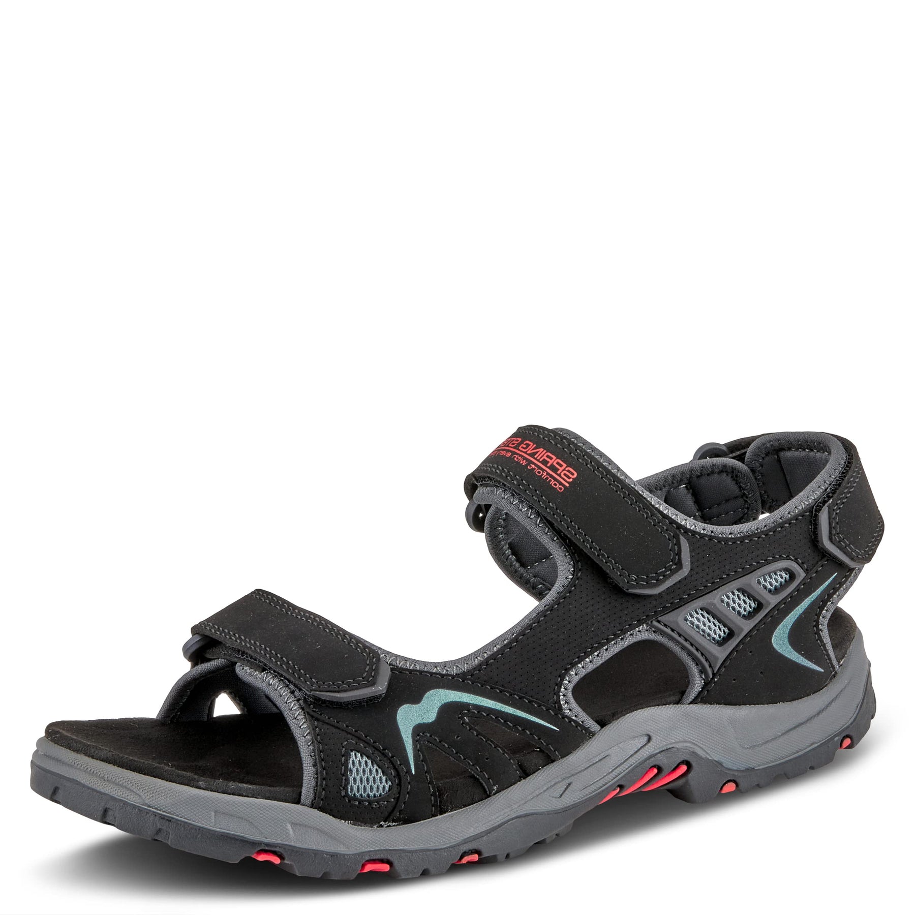 Spring Step Men's Style: CILO This shoe offers a two-way strap system for easy on and off access. The pop of color in this sporty sandal makes this shoe very eye-catching. Upper: Synthetic Lining: Synthetic Insole: Synthetic Outsole: Rubber Closure: Hook&Loop Heel Height: 1.50" Platform Height: 5/8" Features: - Arch Support, Comfort, Flexible Sole, Padded Insole Made in China
