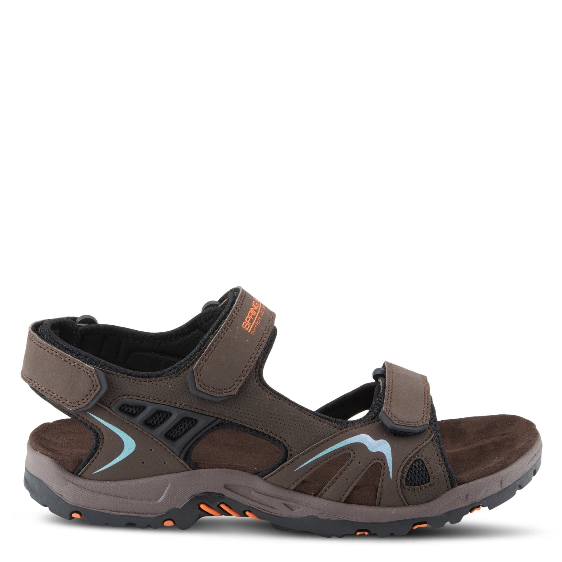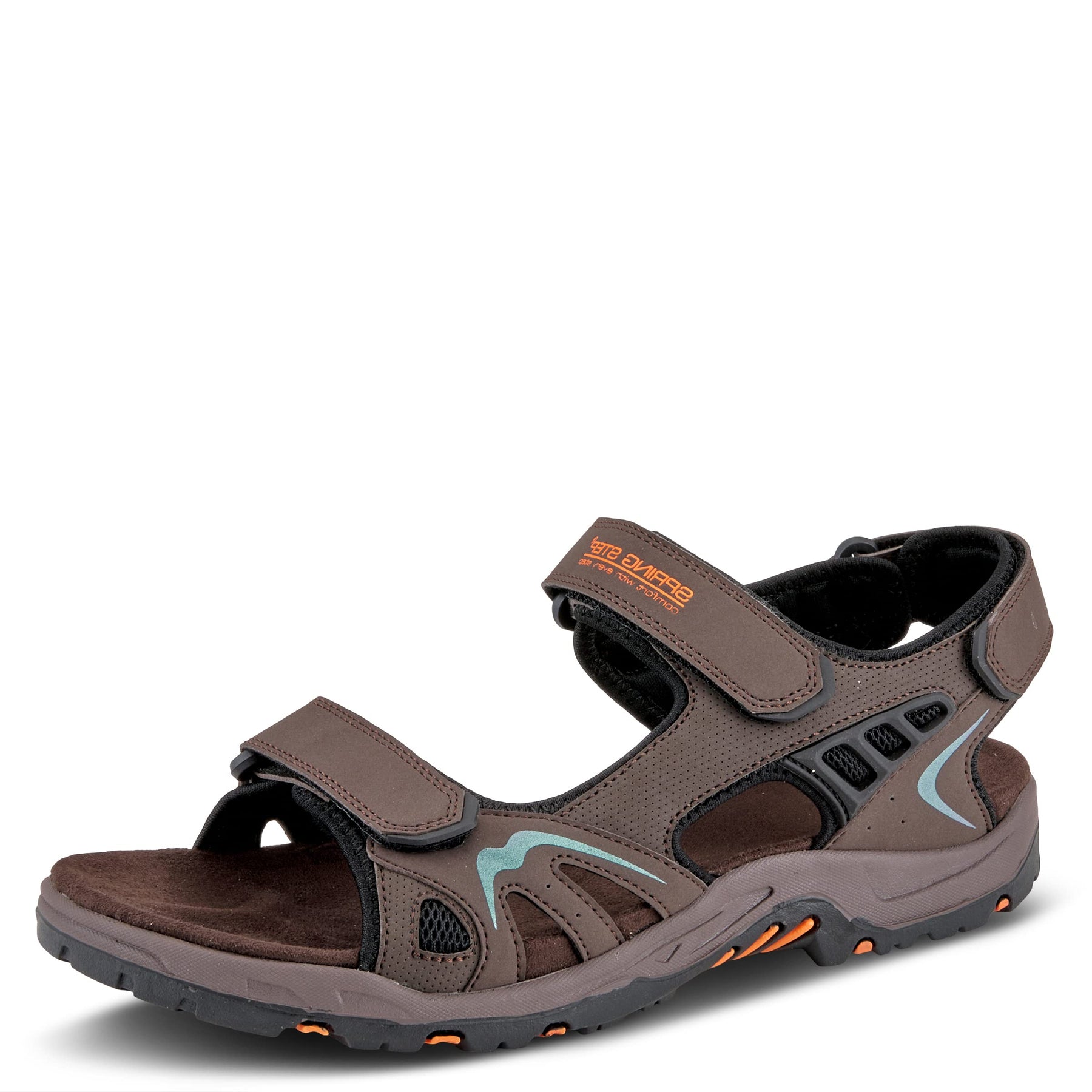 Spring Step Men's Style: CILO This shoe offers a two-way strap system for easy on and off access. The pop of color in this sporty sandal makes this shoe very eye-catching. Upper: Synthetic Lining: Synthetic Insole: Synthetic Outsole: Rubber Closure: Hook&Loop Heel Height: 1.50" Platform Height: 5/8" Features: - Arch Support, Comfort, Flexible Sole, Padded Insole Made in China