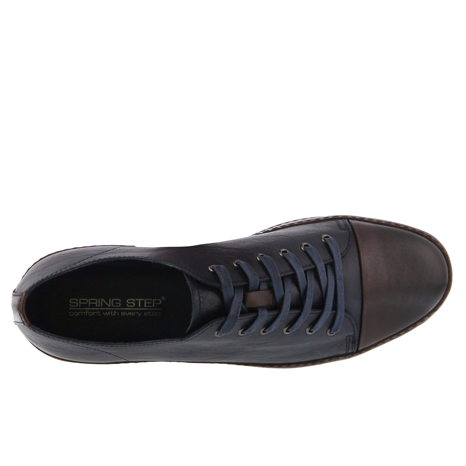 The Spring Step Jimmy Sneaker is a two-tone leather sneaker with a cap toe design and six polished gun metal eyelets. Round toe Genuine leather Metal eyelets Flat waxed cotton laces Cozy textile