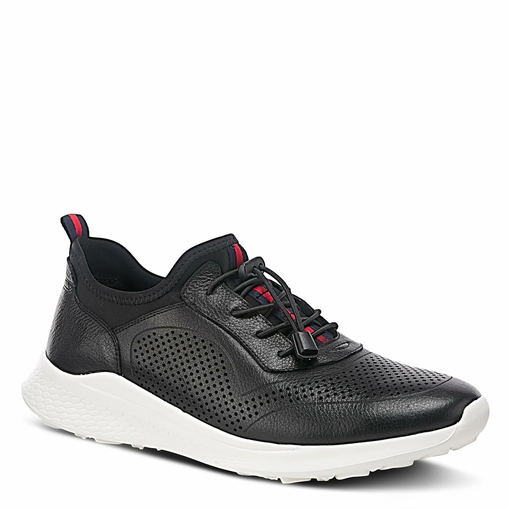 Spring Step Men Style: KRIS Athletic-inspired sneaker featuring a racing strip woven on the upper and heel pull, elastic laces with toggle, and clean perforations on the side and toe area on an all-day-wear OUTSOLE. Upper: Leather Lining: Textile Insole: Leather Outsole: Polyurethane Closure: Toggle Heel Height: 1 1/2" Platform Height: 1" Features: - Adjustable, Comfort, Elastic, Padded Insole, Removable Insole